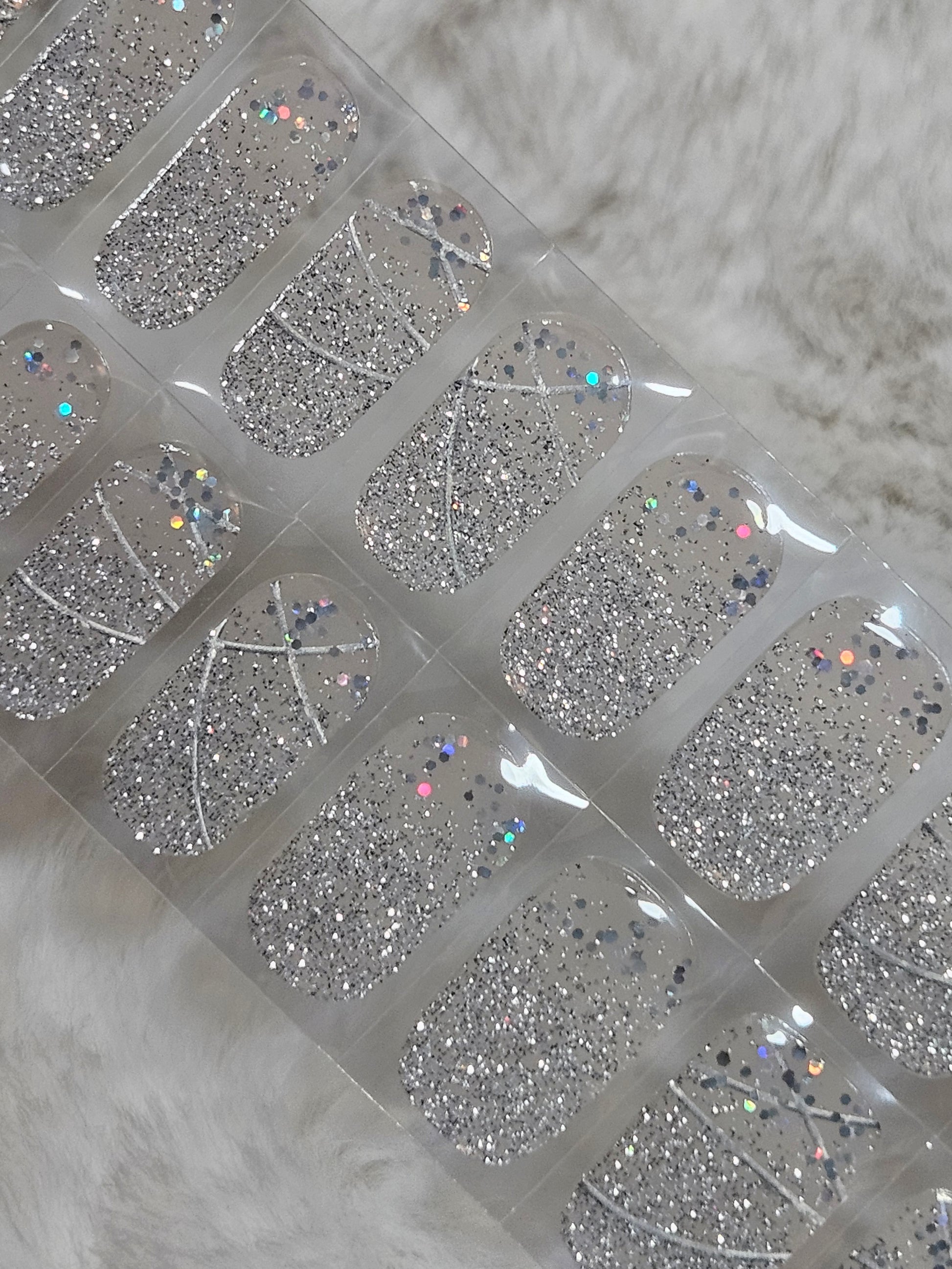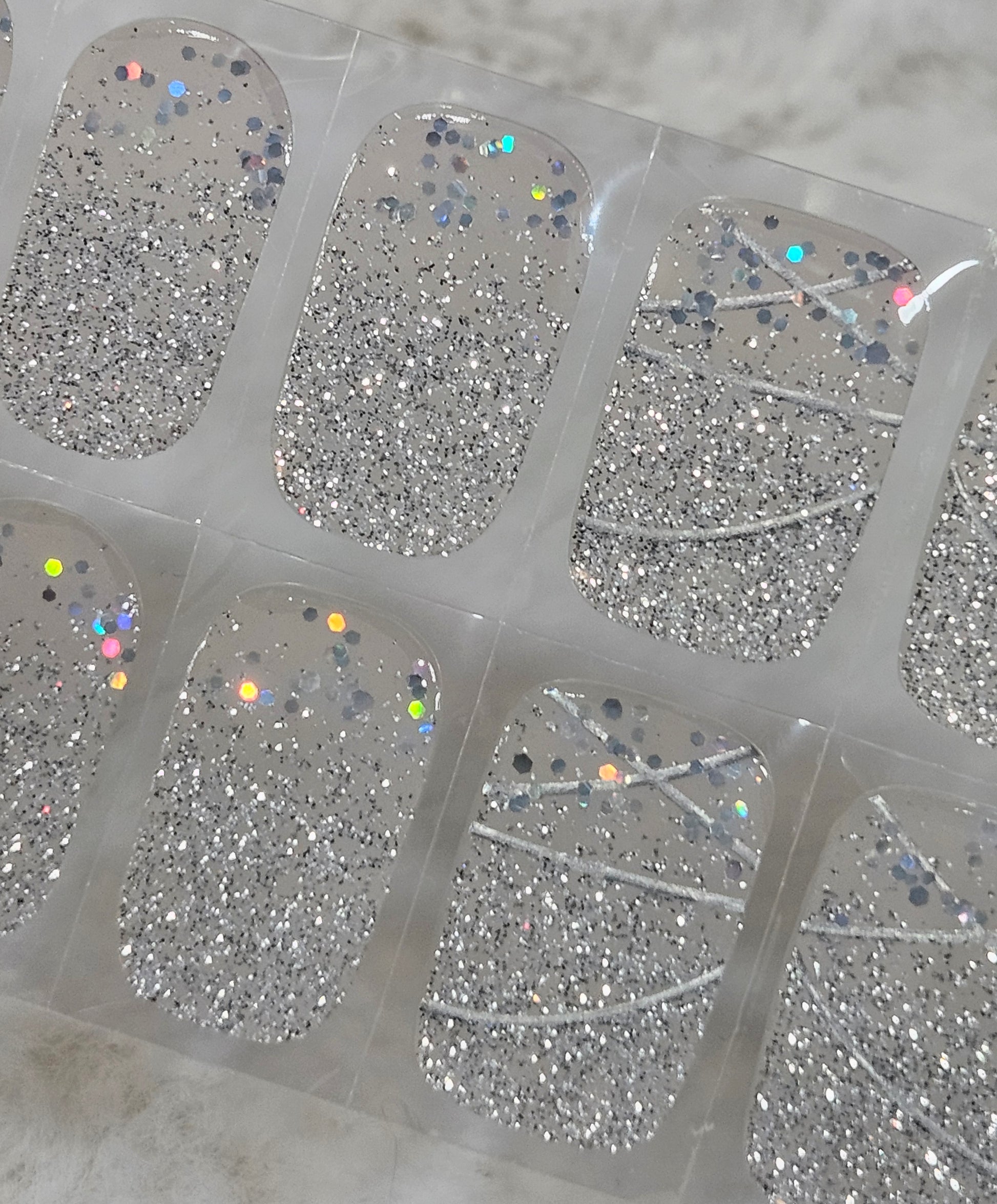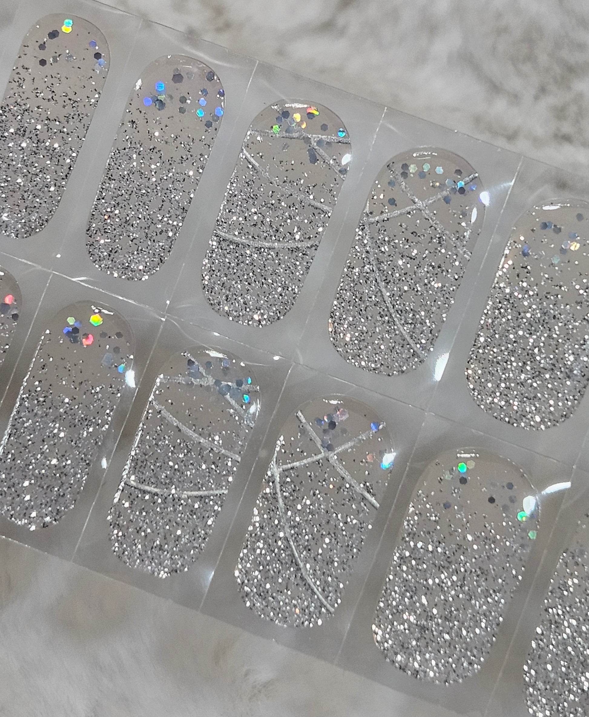 Glitter, Holographic Glitter, Foil, Semi Milky, French Manicure, Silver
