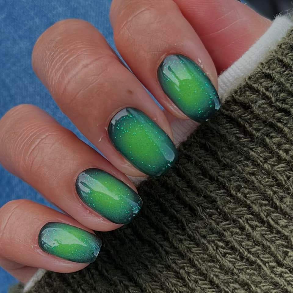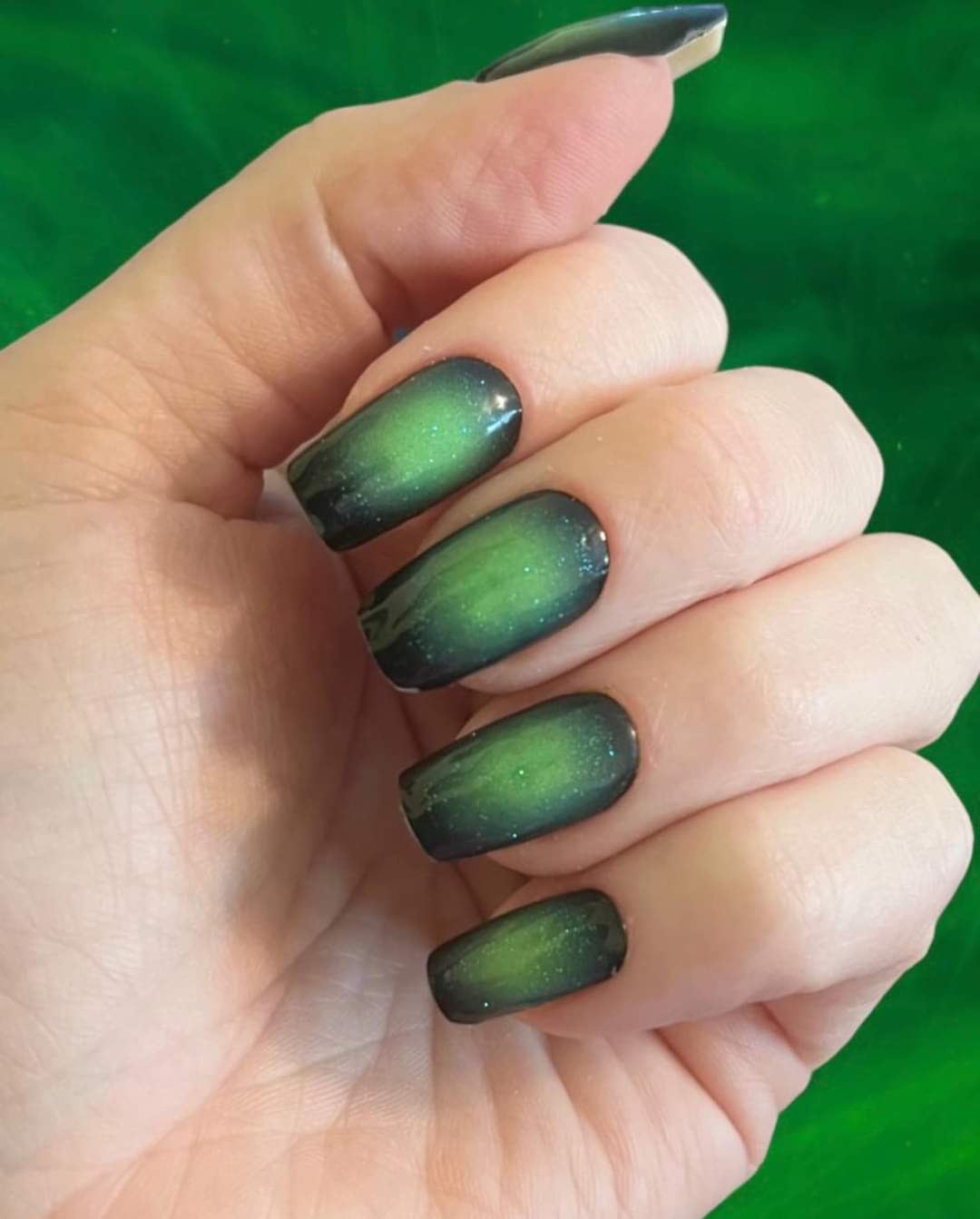Glossy, Shimmer, Aura Ombre, Black, Green