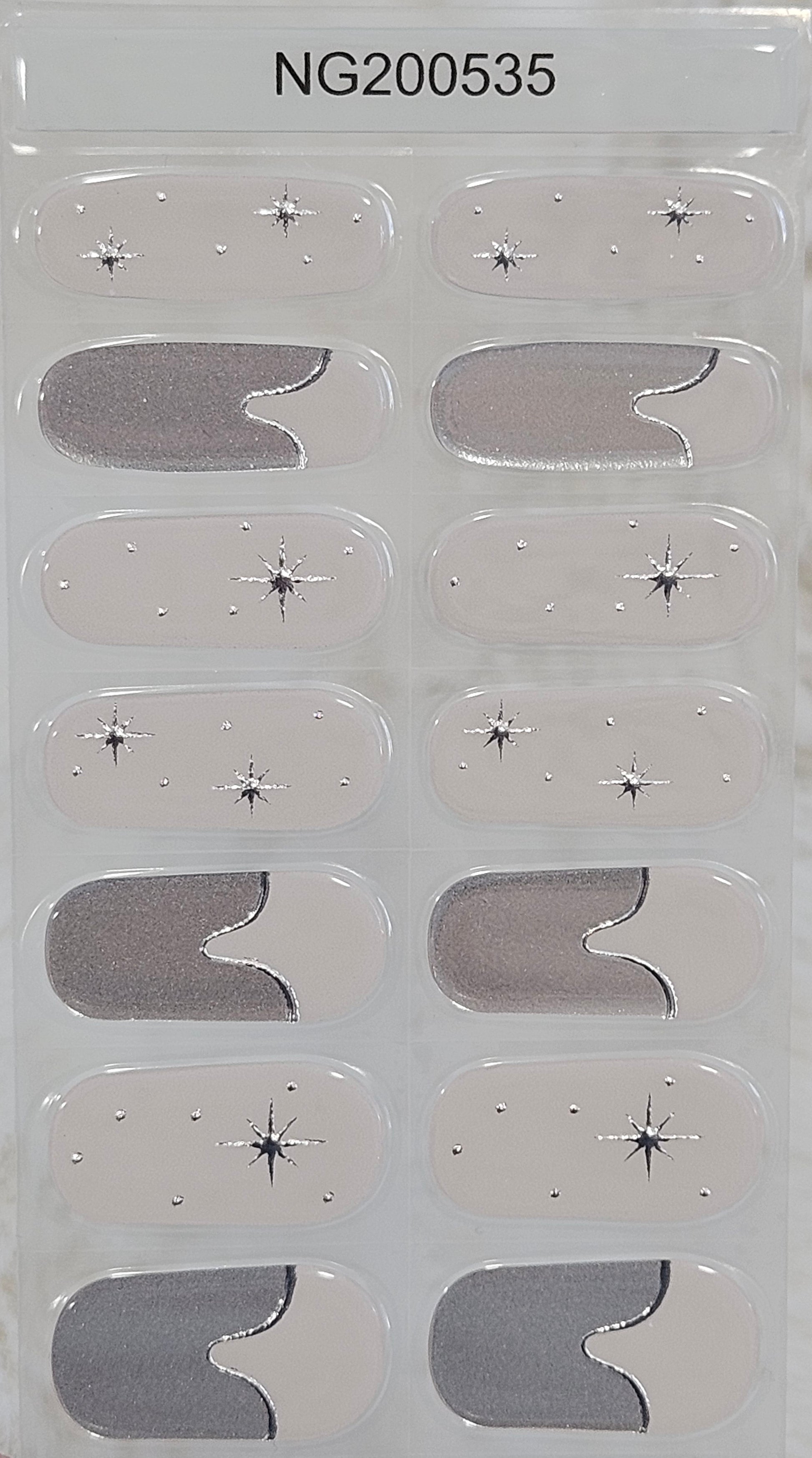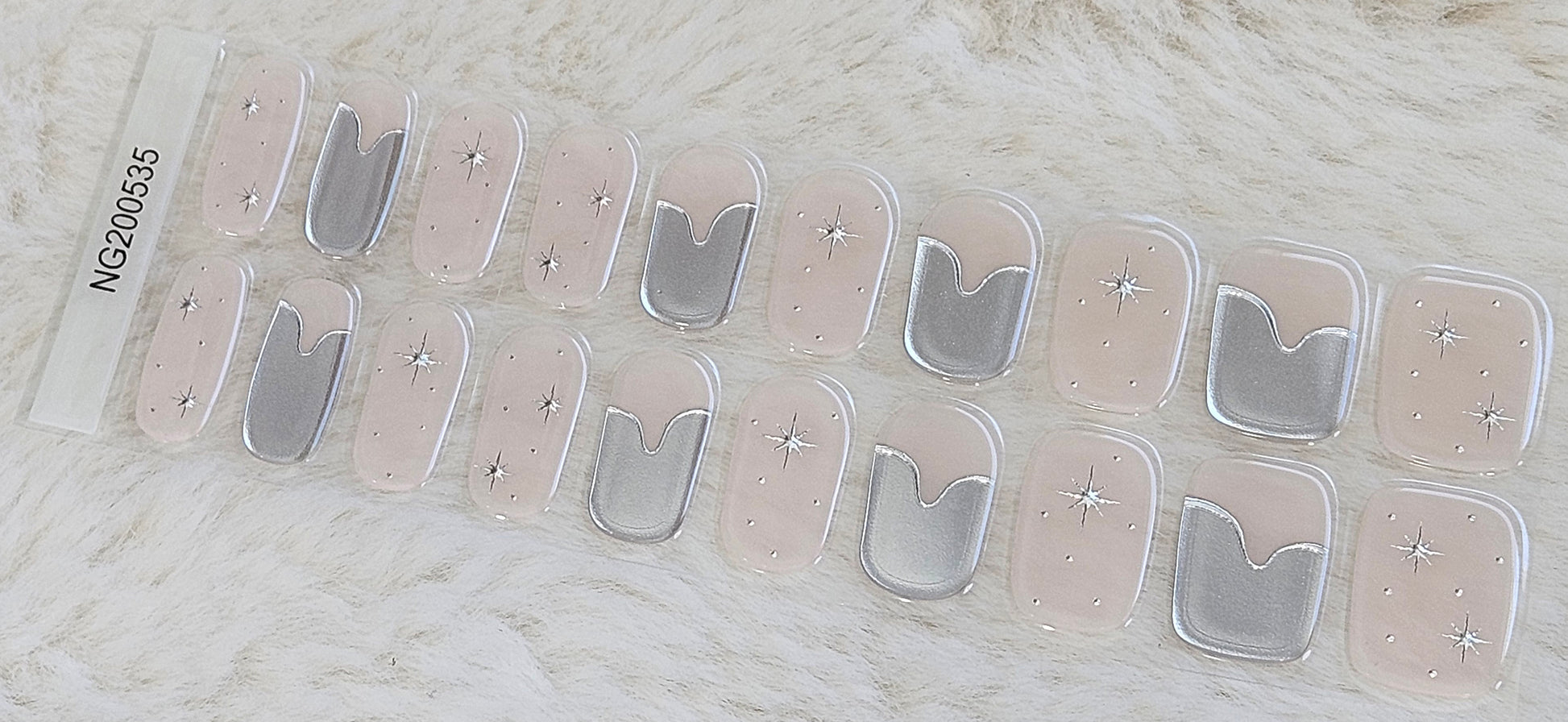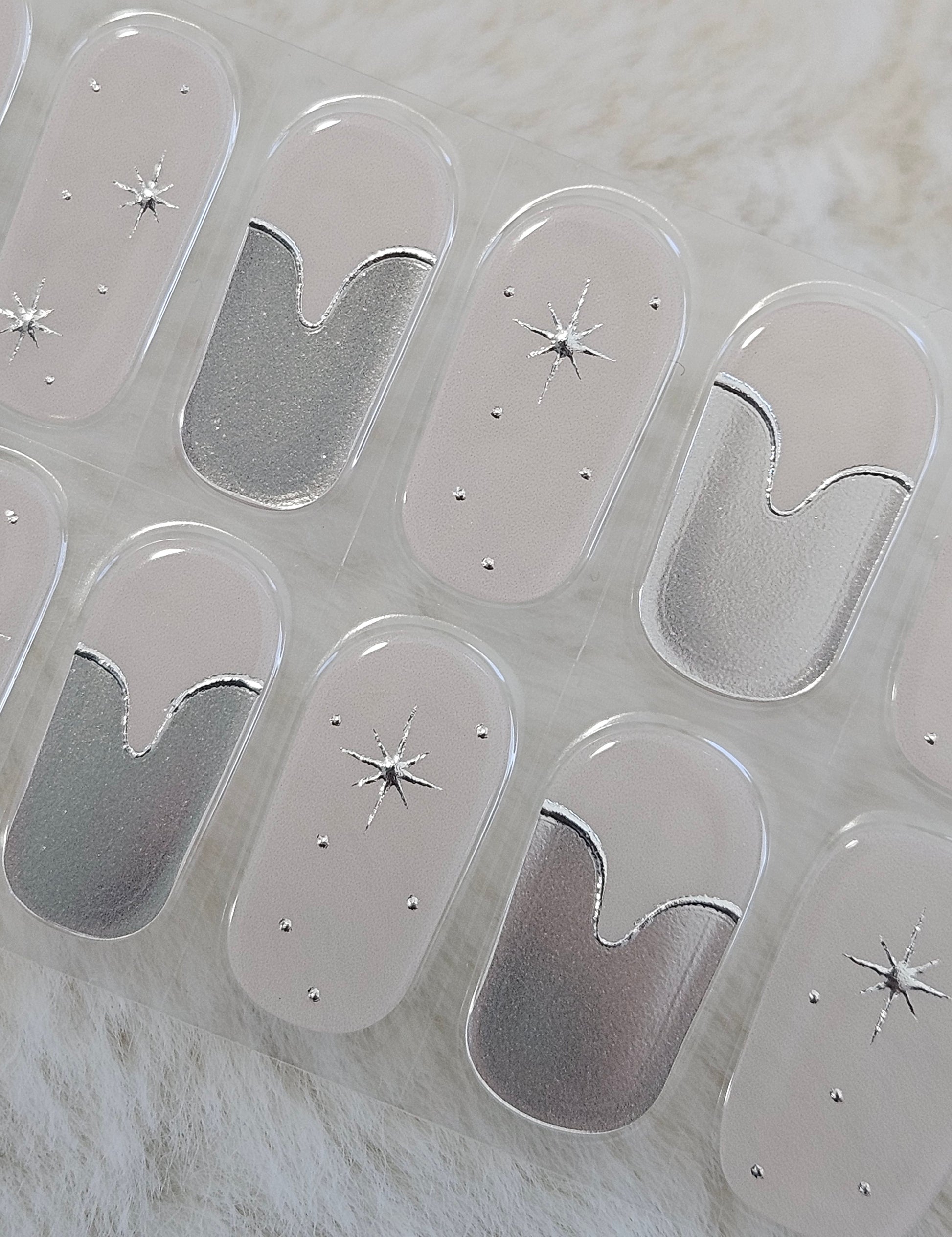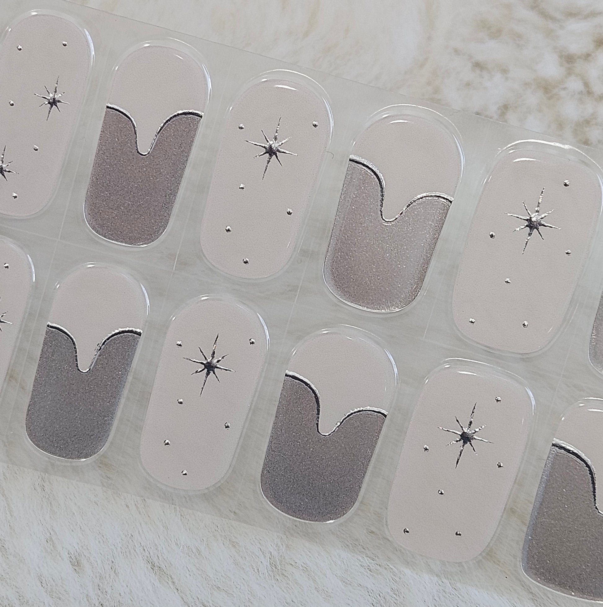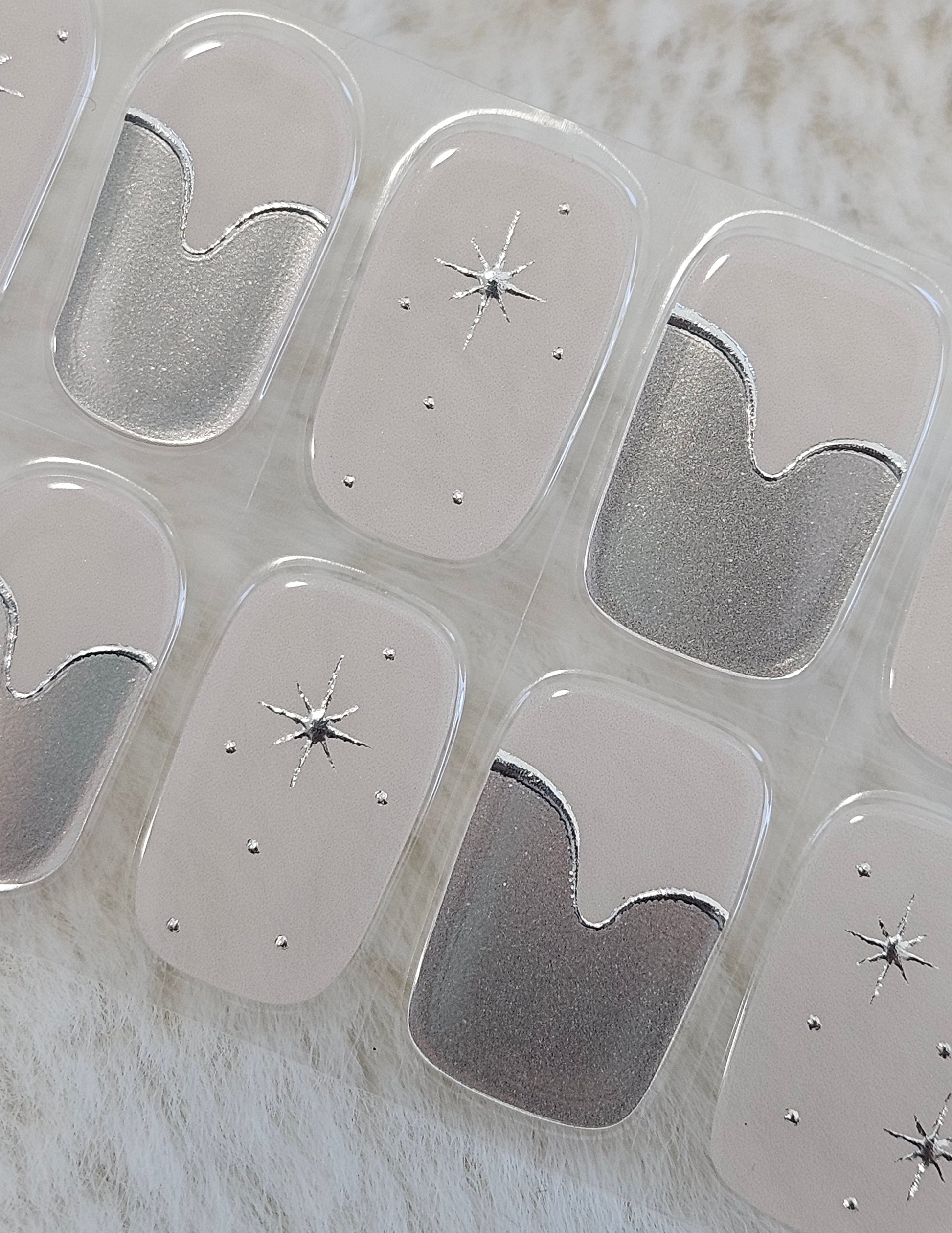 Metallic, Foil, Glossy, Milky Base, French Manicure