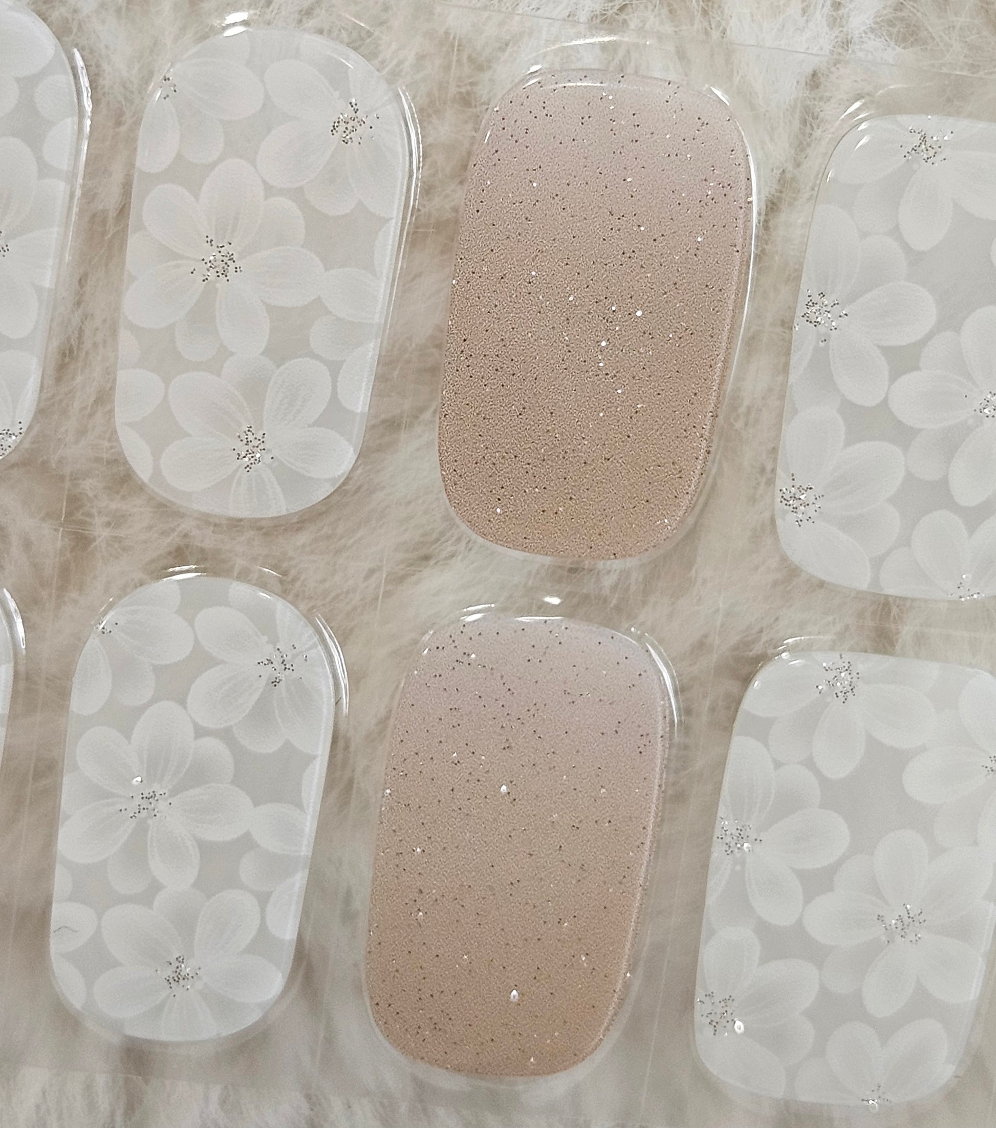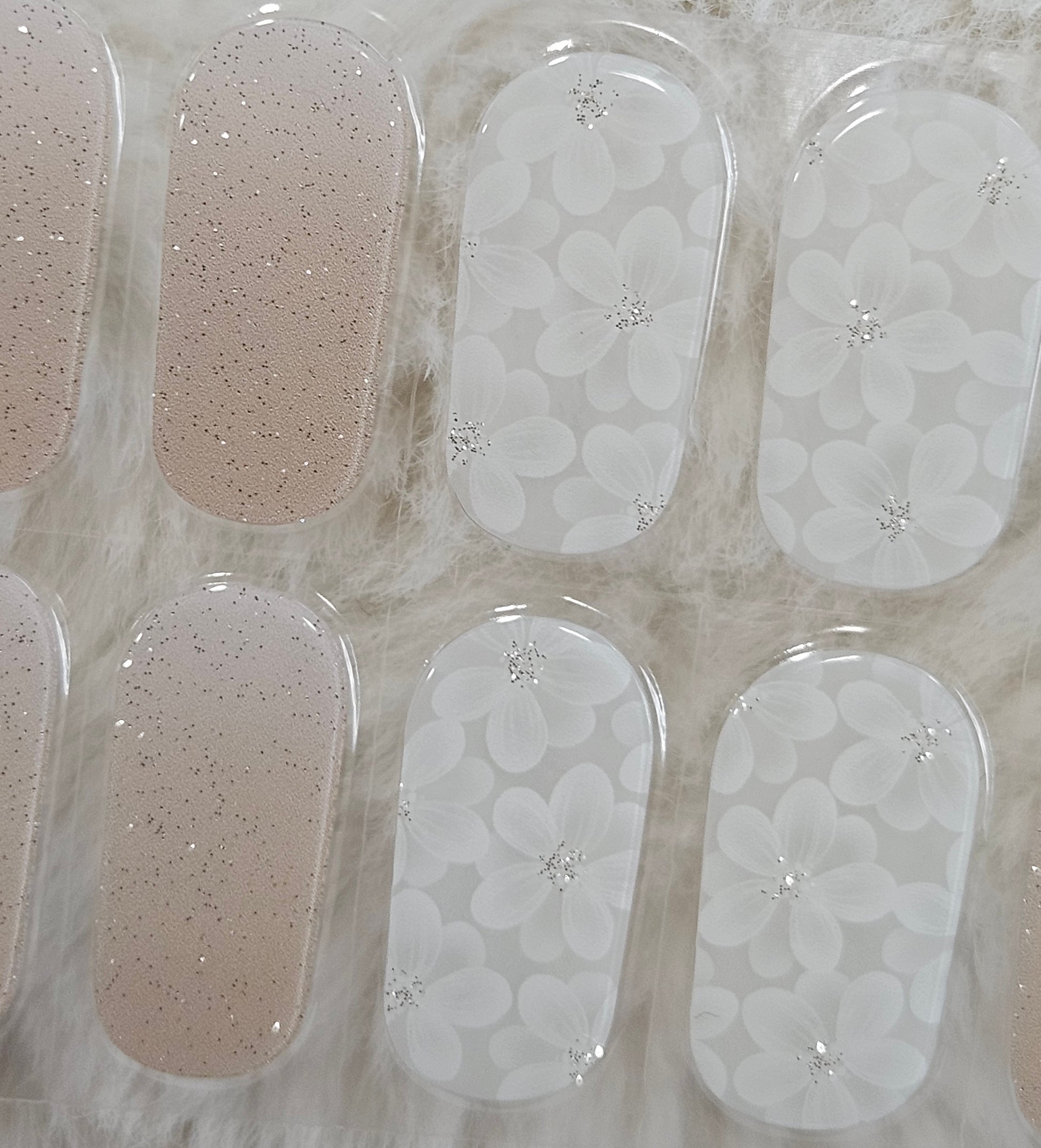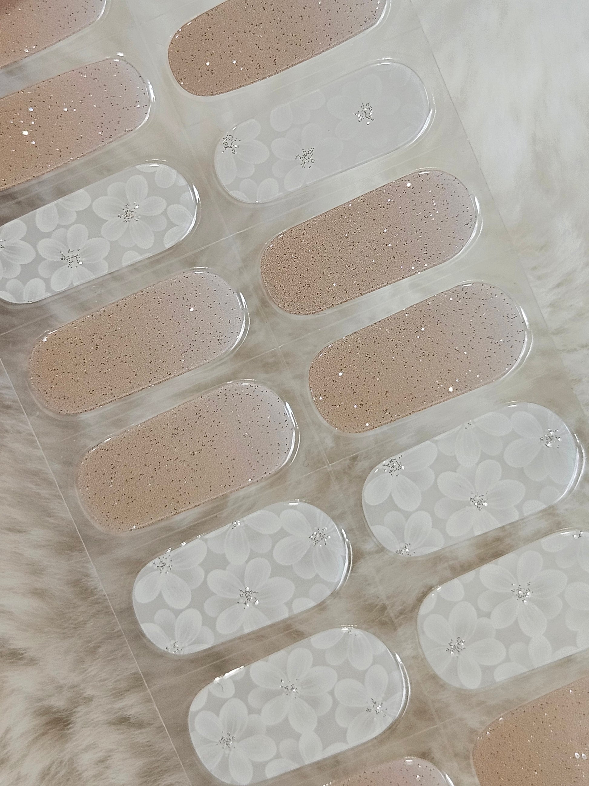 Glossy, Glitter, Ombre, Milky, Nude, White, Flowers