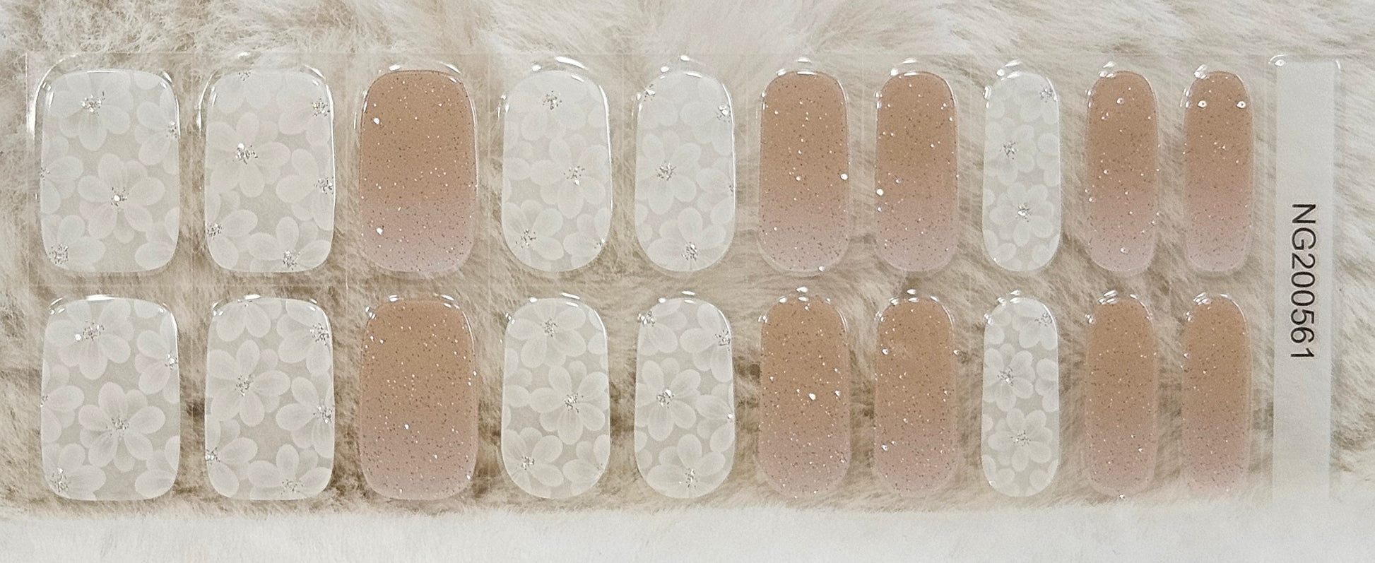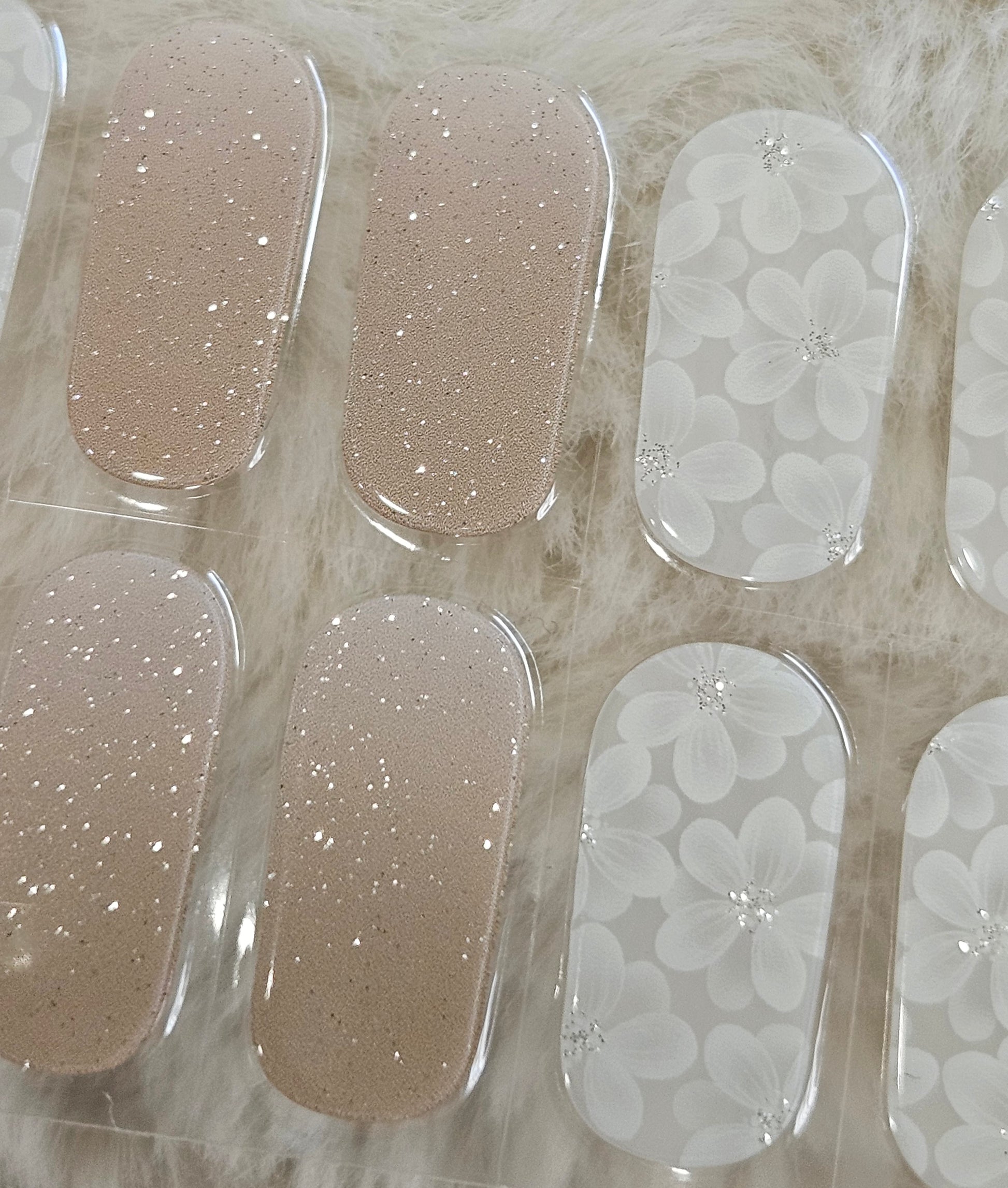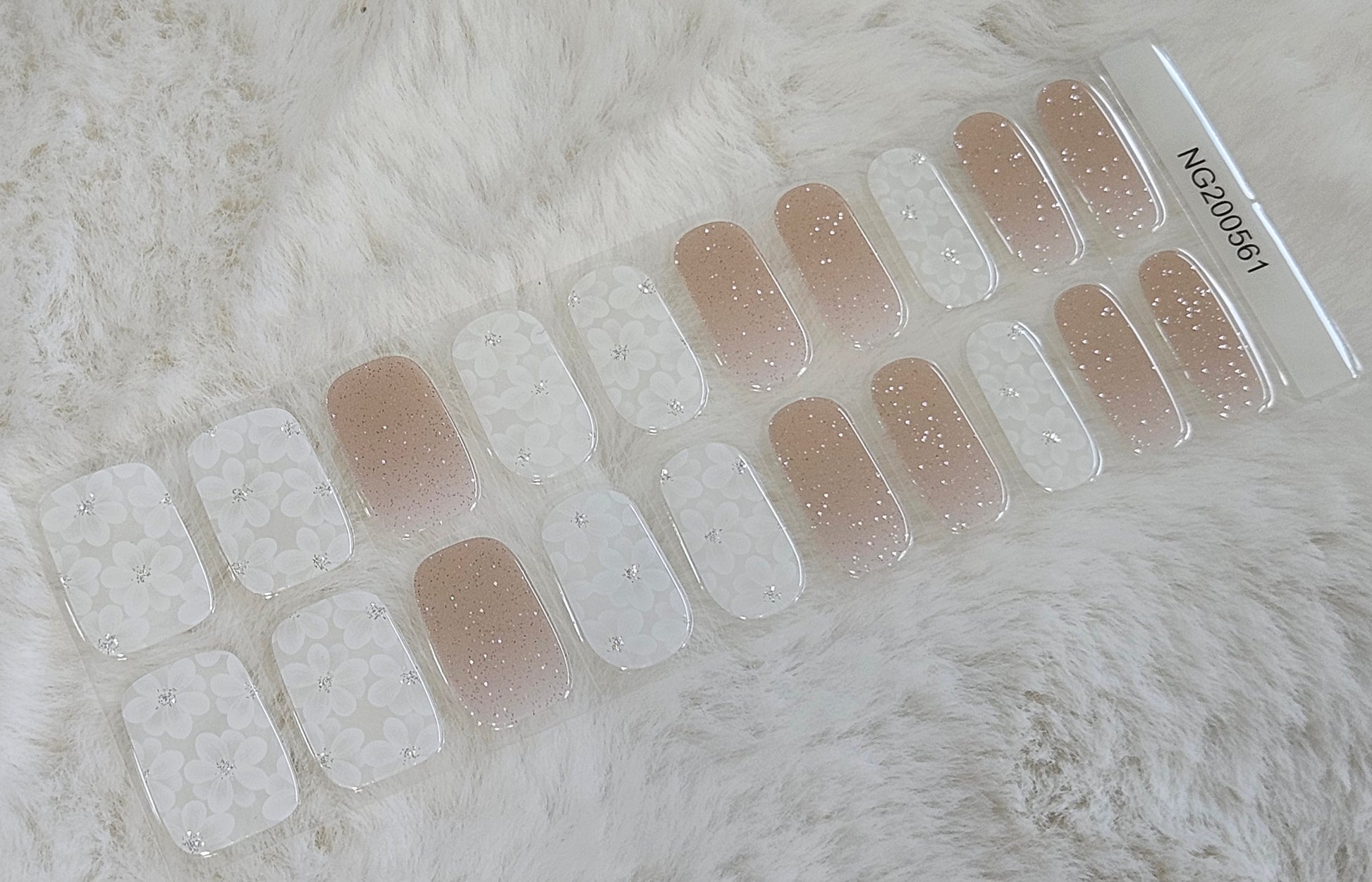 Glossy, Glitter, Ombre, Milky, Nude, White, Flowers