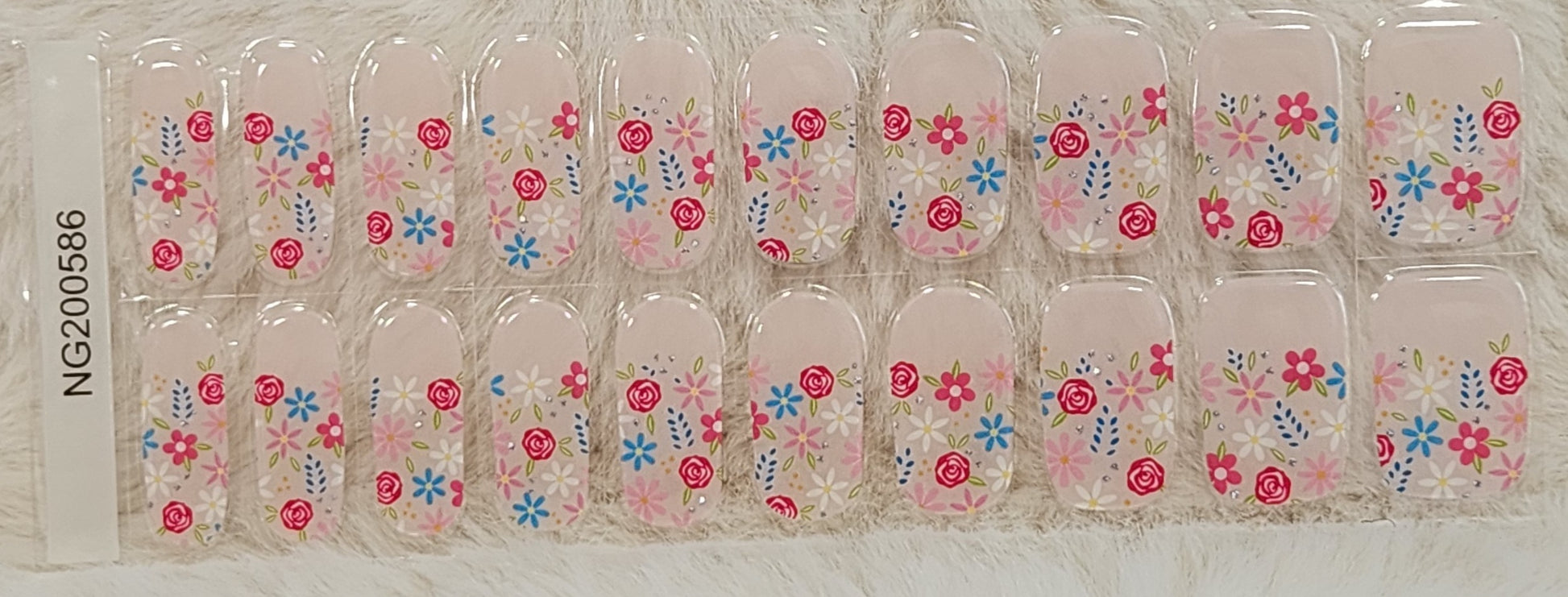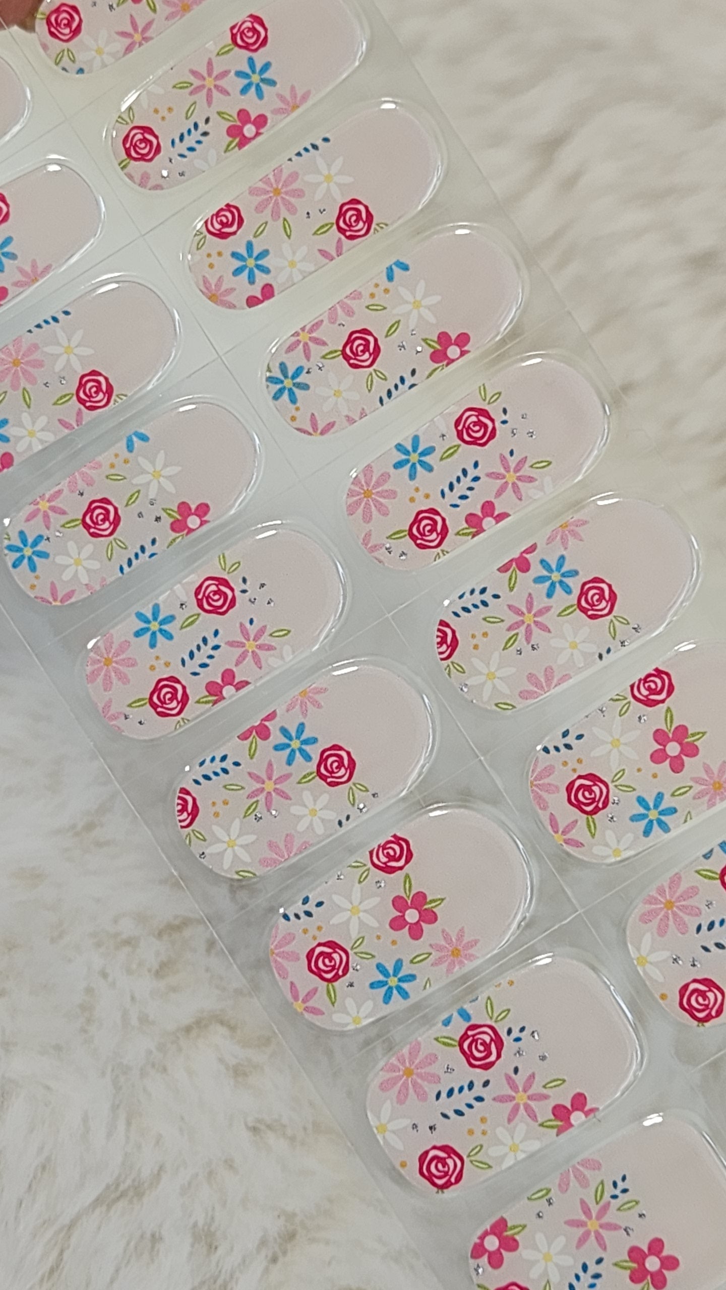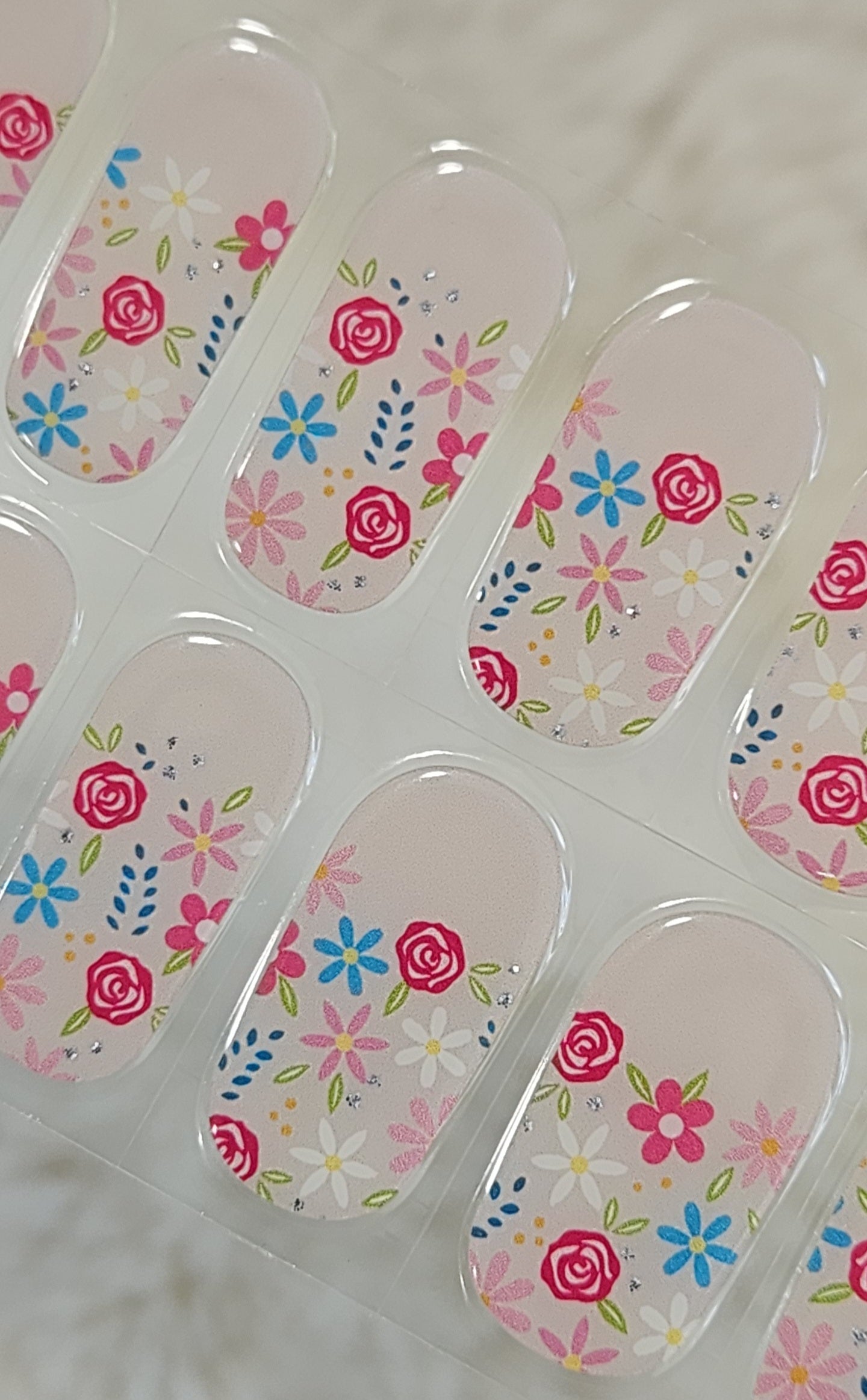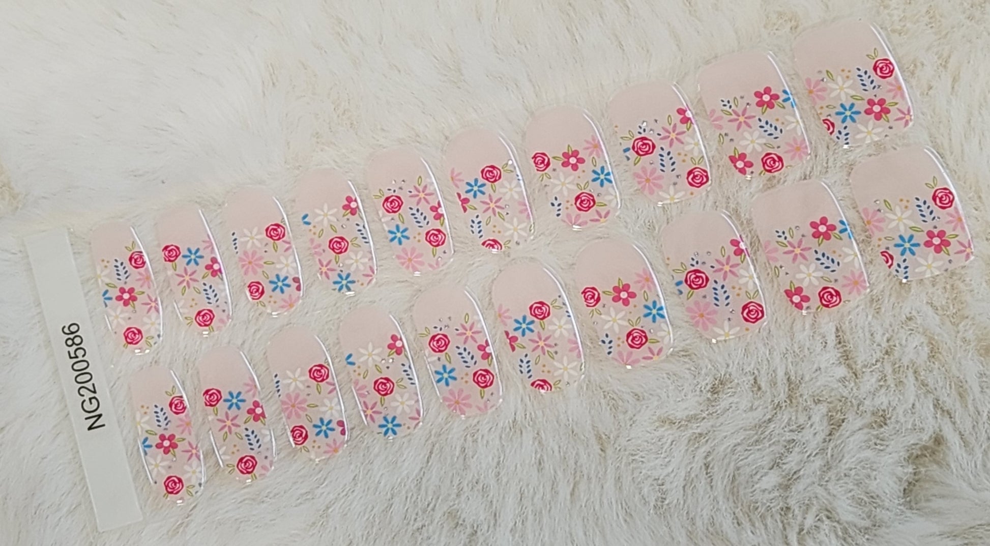 Glossy, Glitter, Milky, Floral, French Manicure, Pink, Blue, White