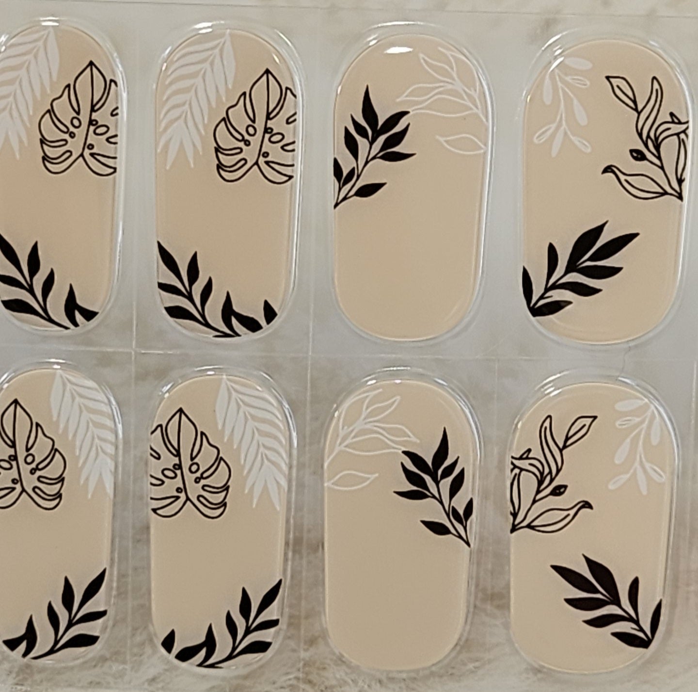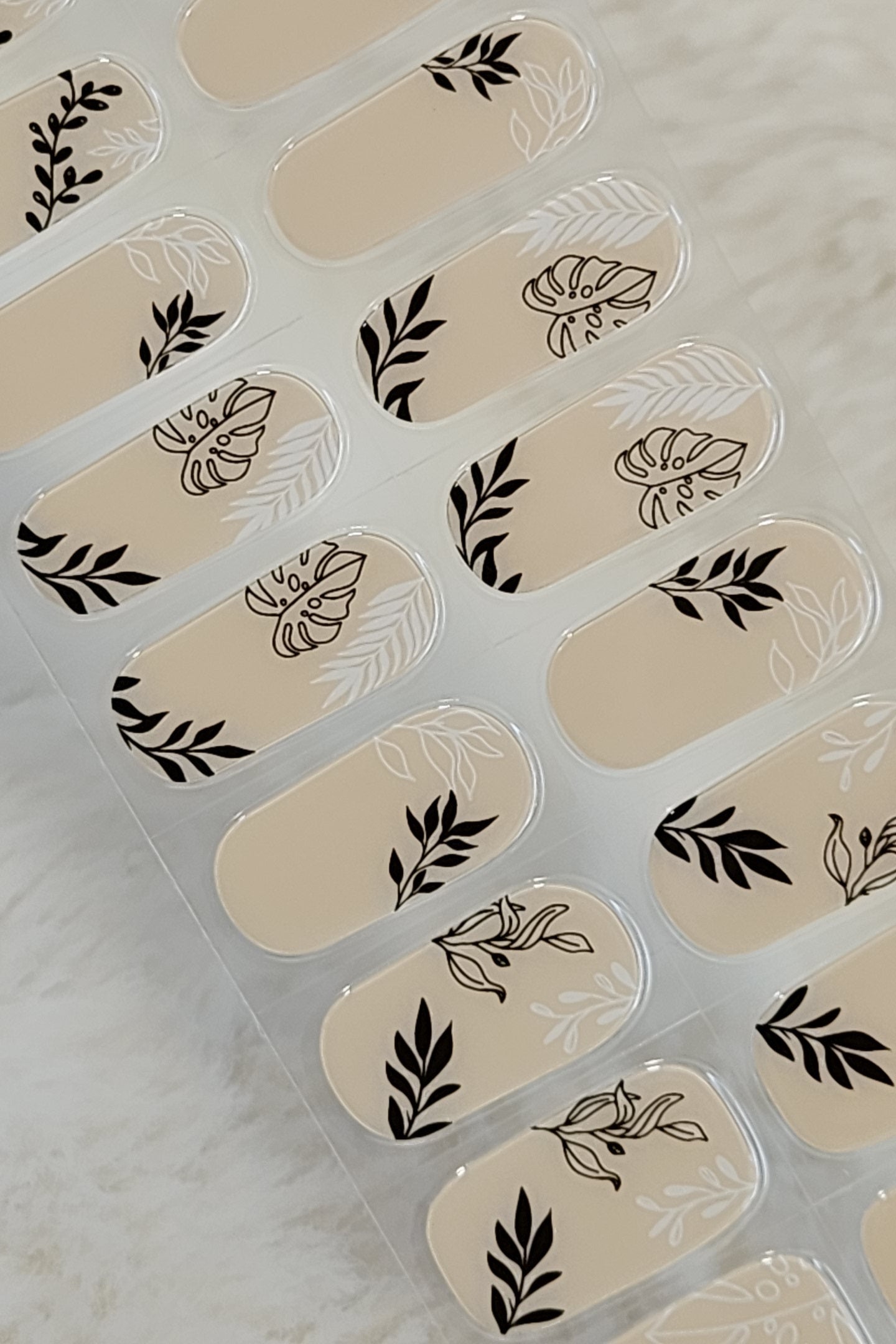 Glossy, Tropical, Monstera, Leaves, Beige Base, Black, White