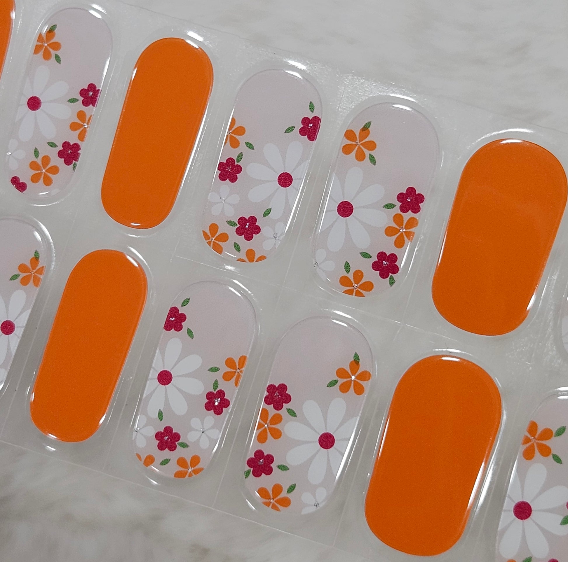 Glossy, Milky, French Manicure, Flowers, Orange, White, Maroon
