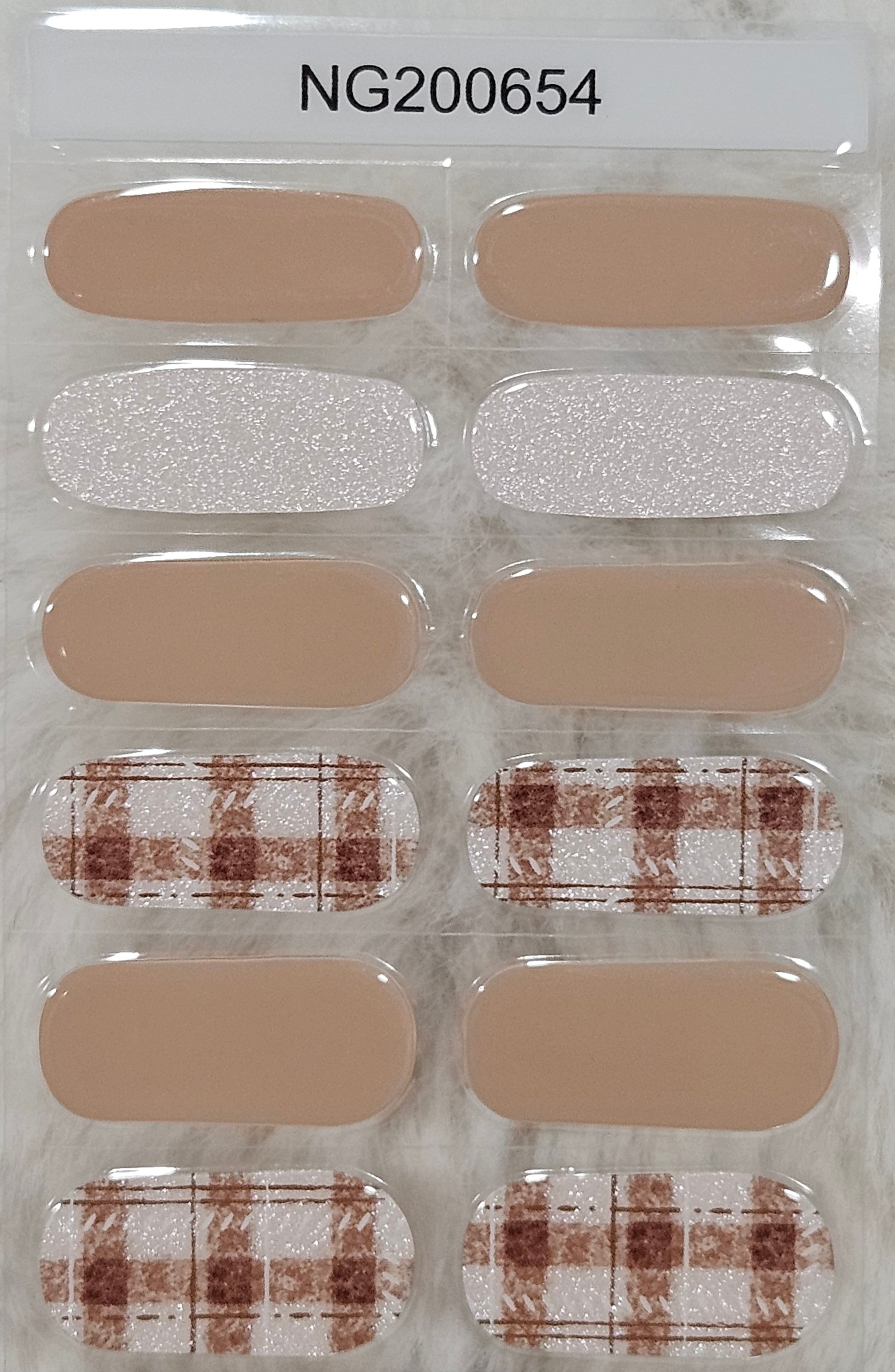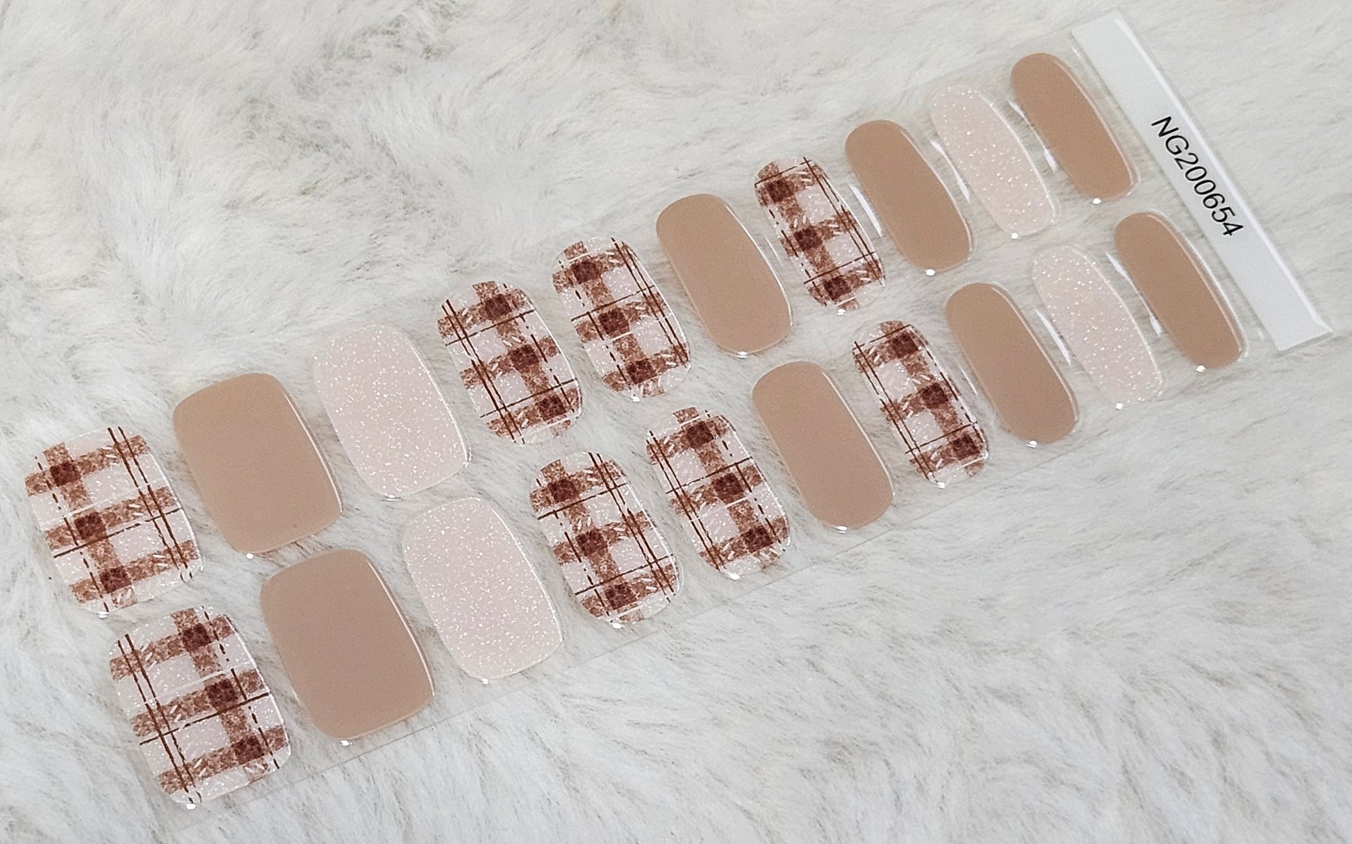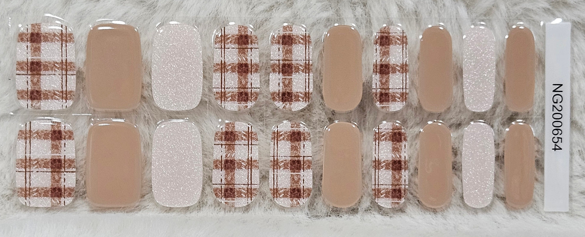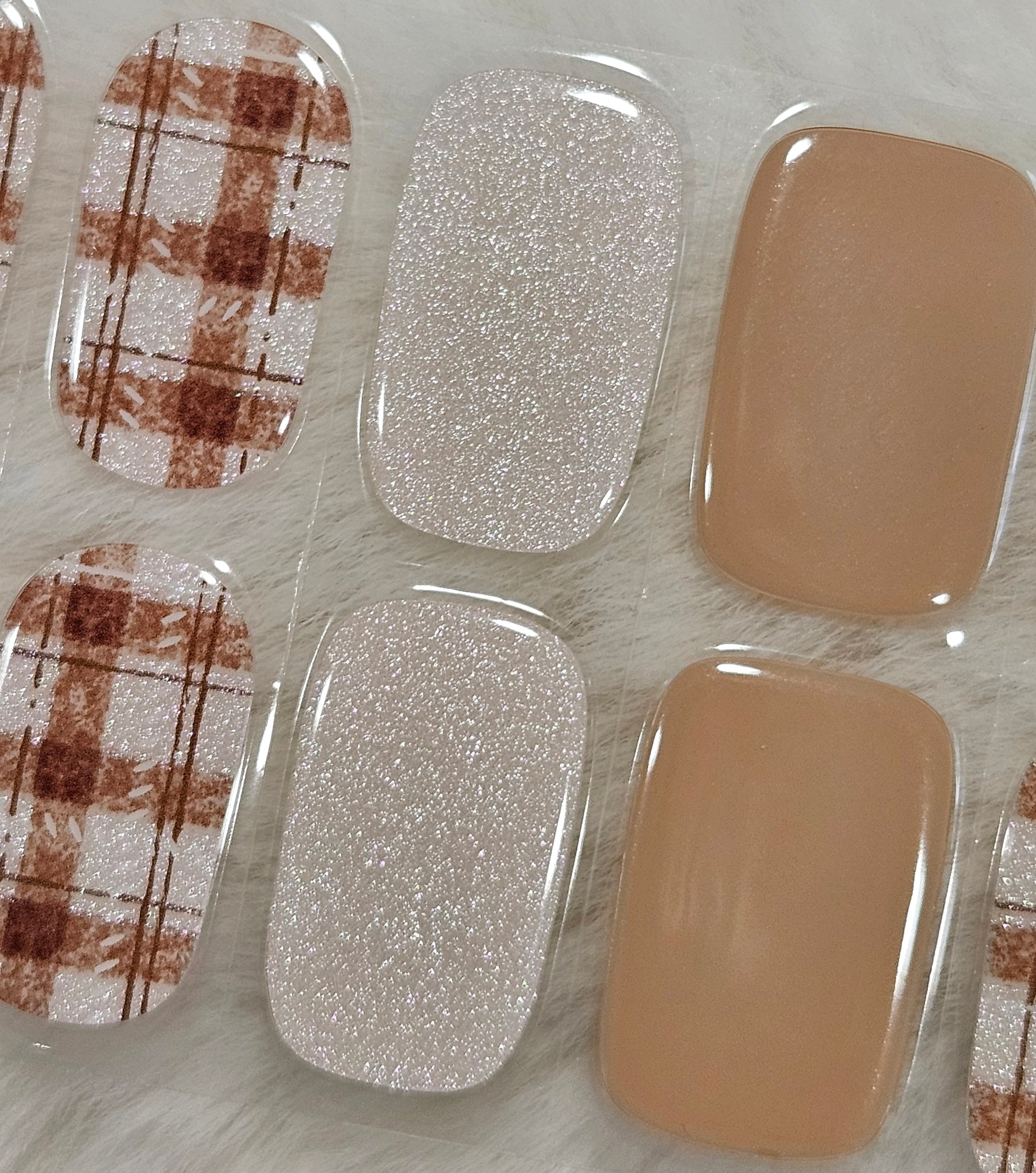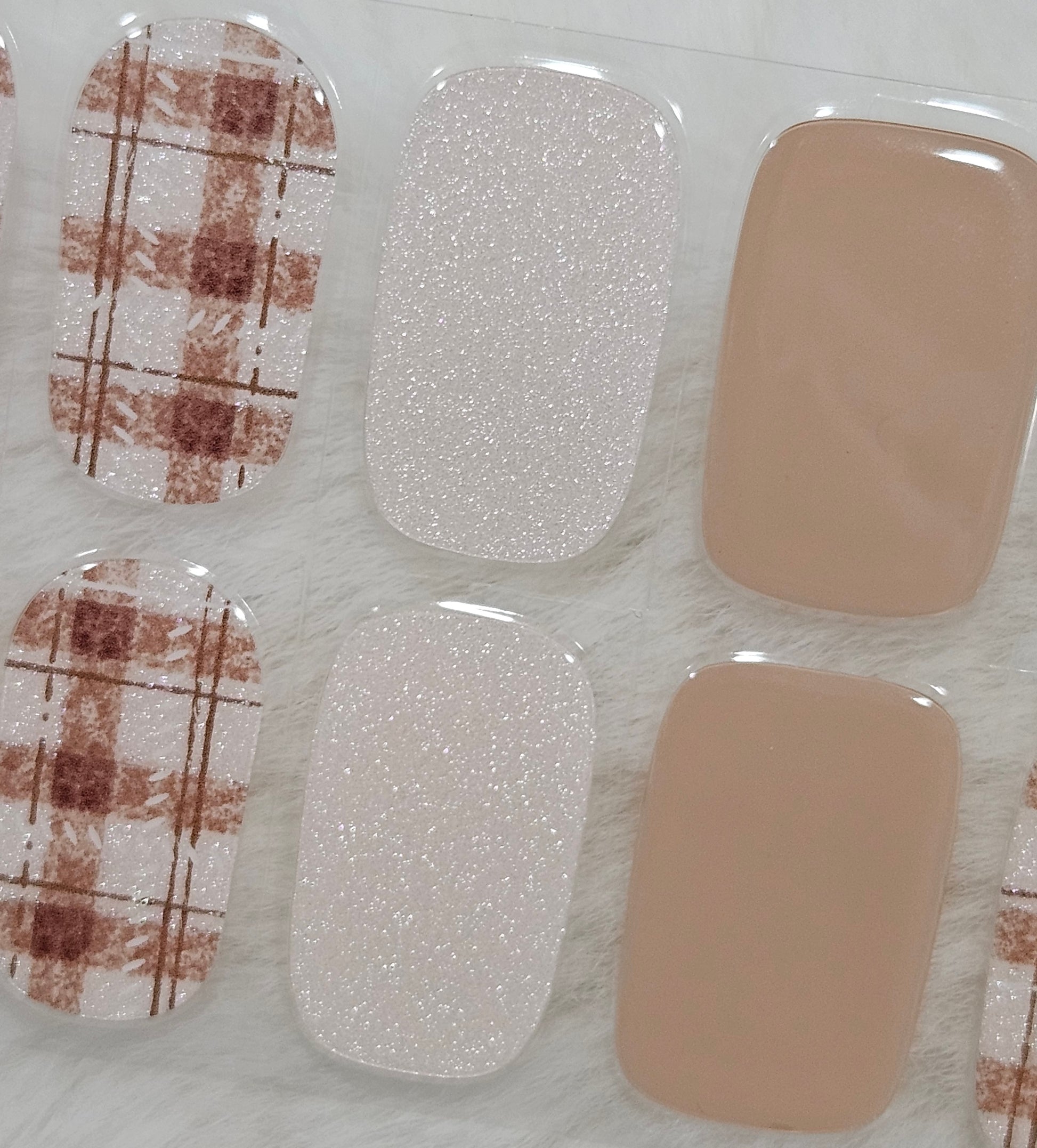 Glossy, Shimmer Glitter, Plaid, Tan/Beige, Brown