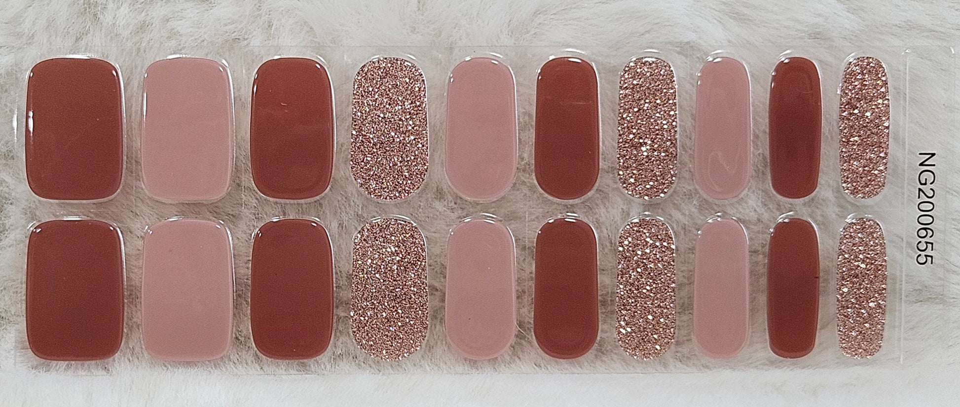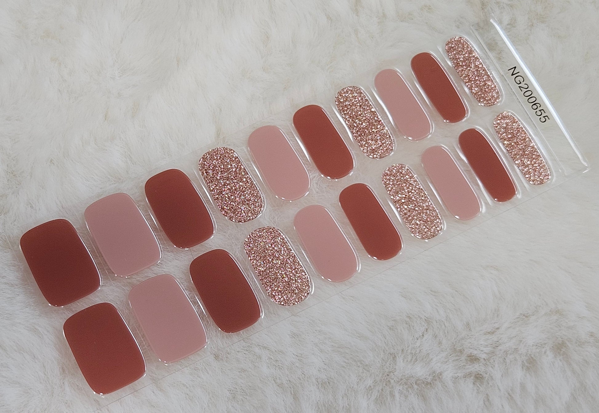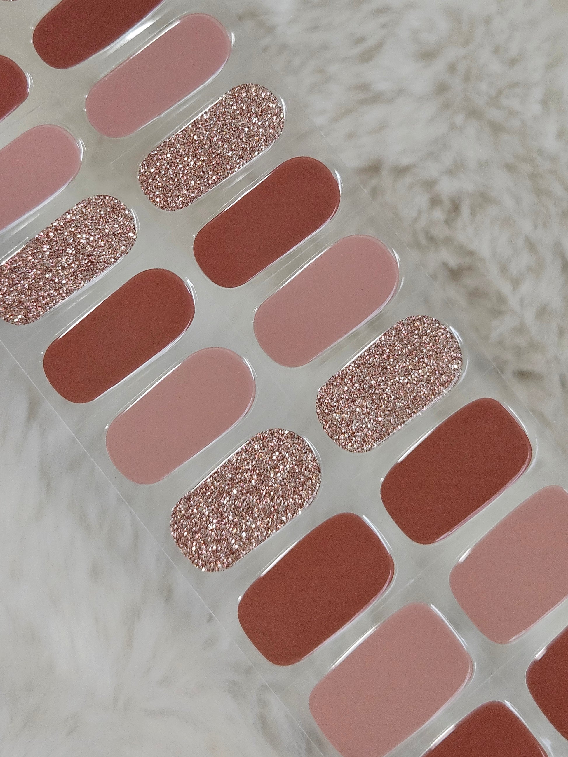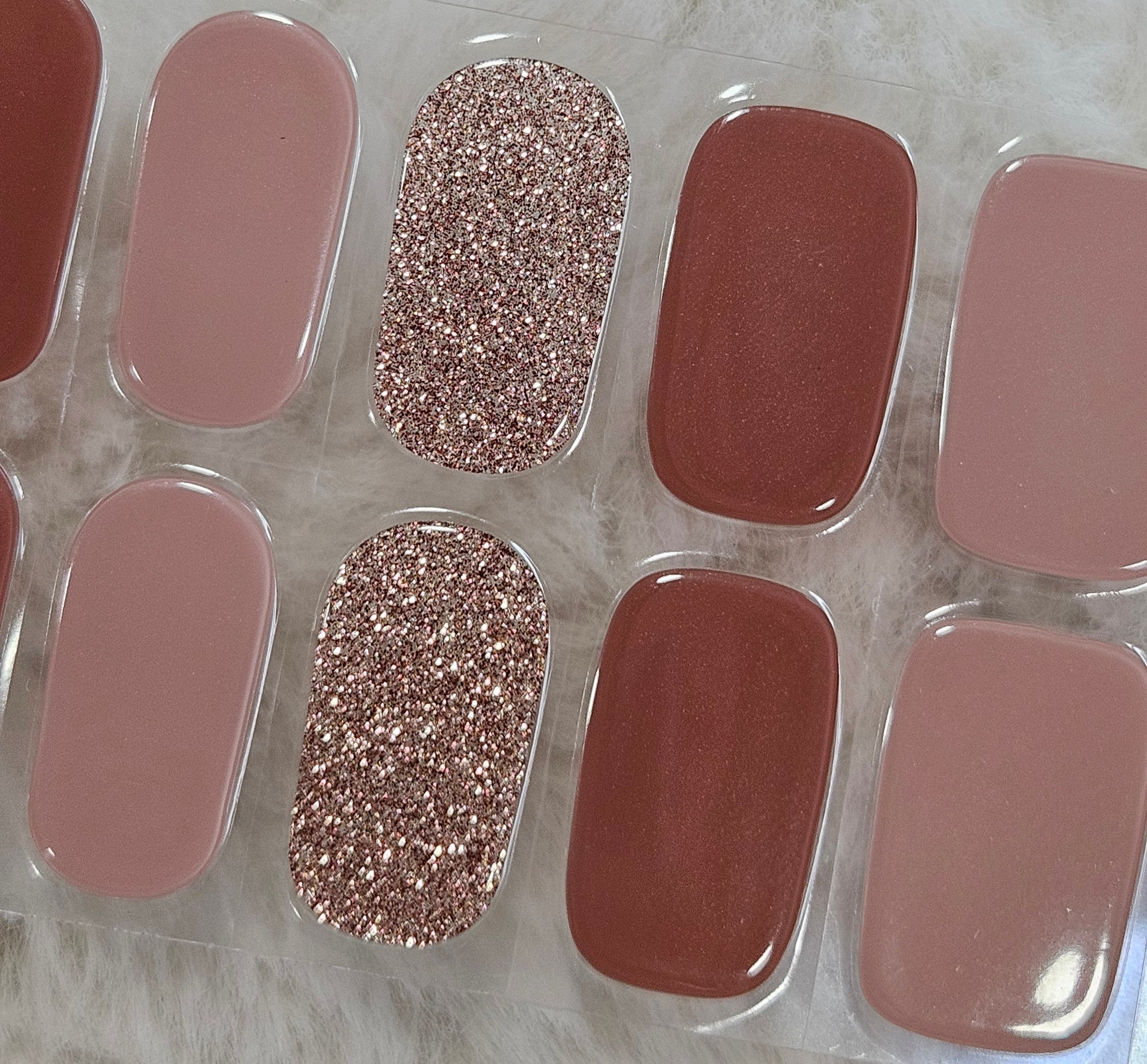 Glossy, Glitter, Solid, Mauve, Rose Gold, Brown, Mixed Mani