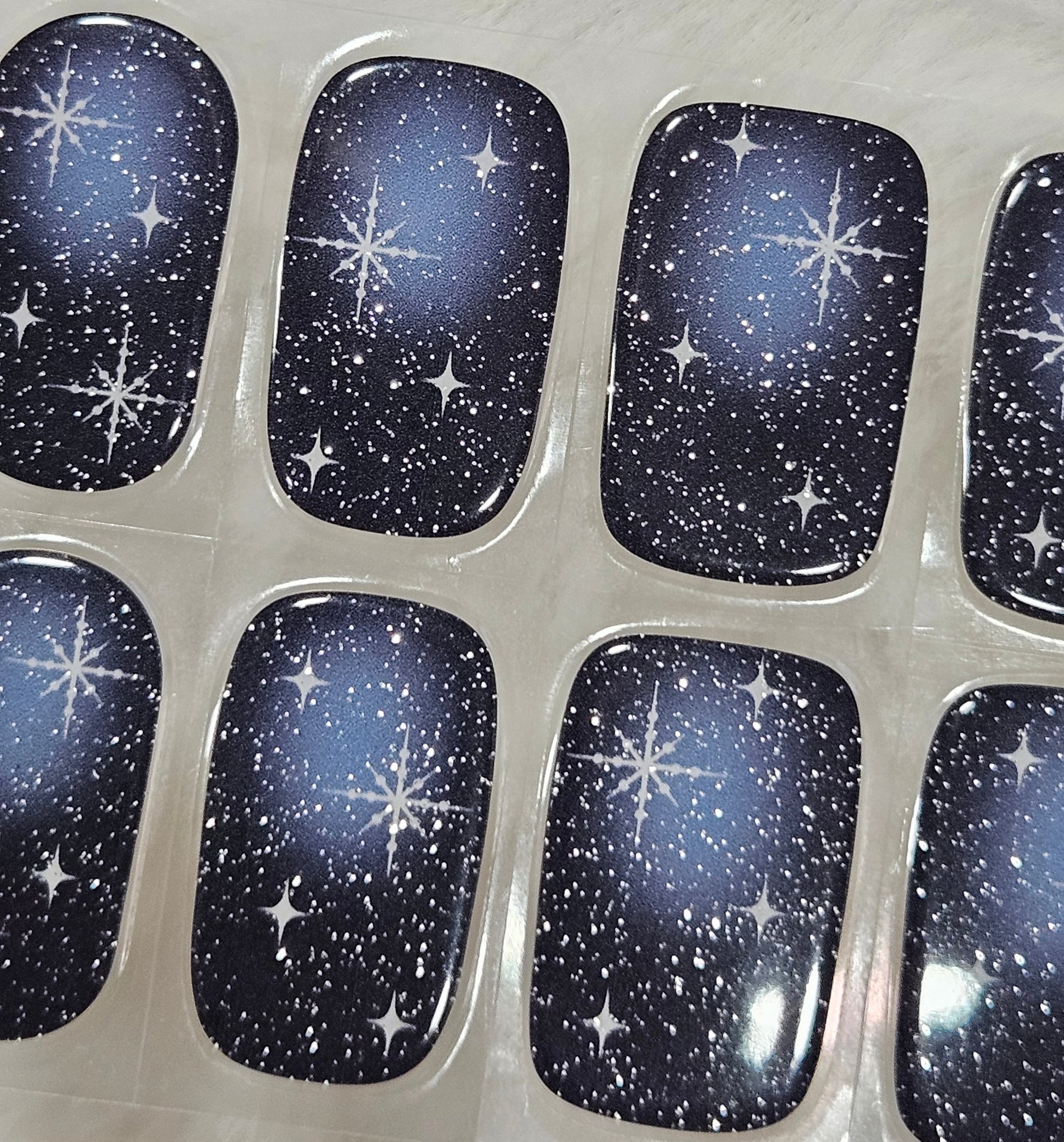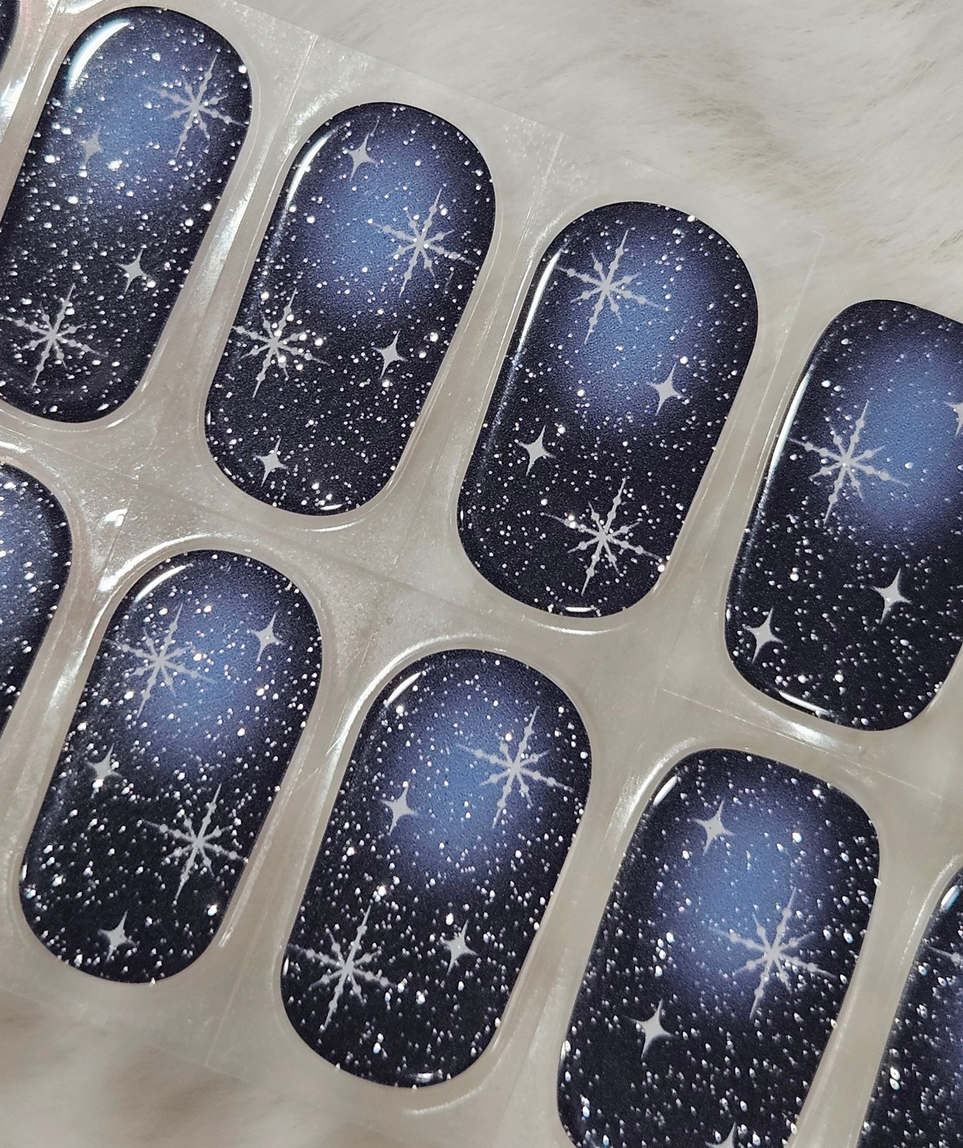 Glossy, Glitter, Aura Ombre, Blue, White, Silver, Snowflakes, Christmas, Winter