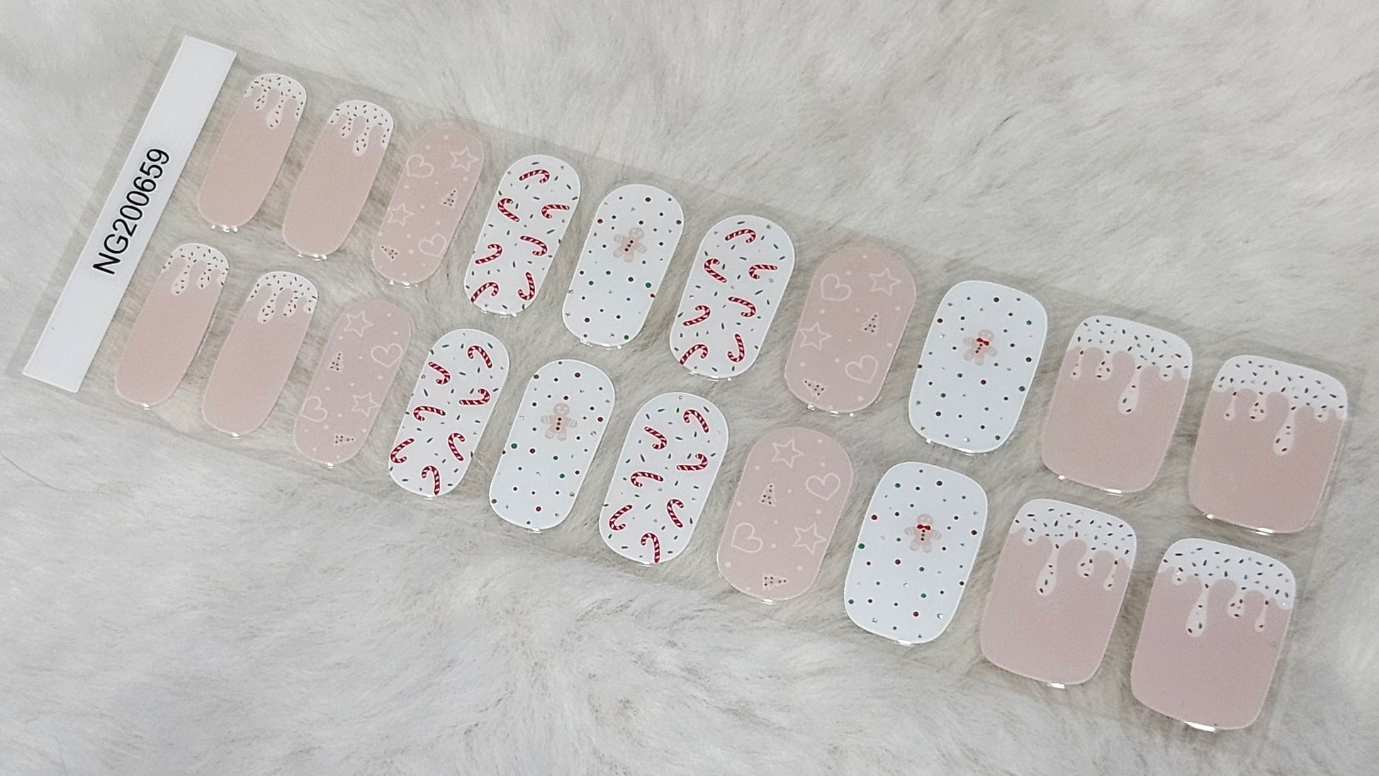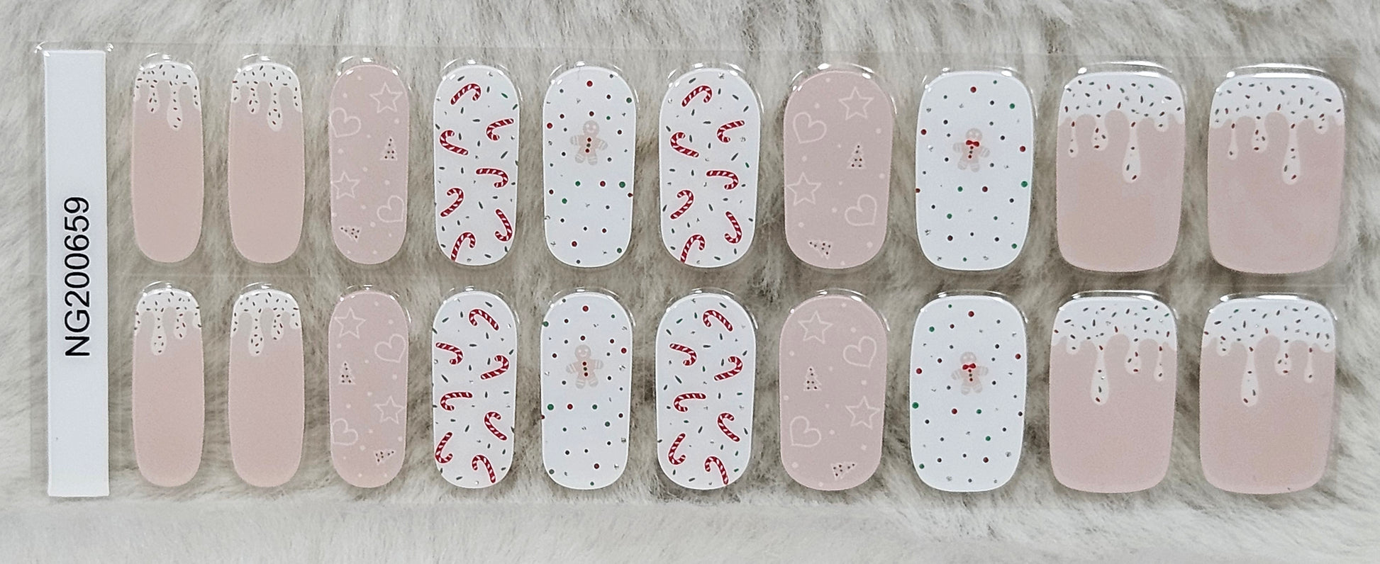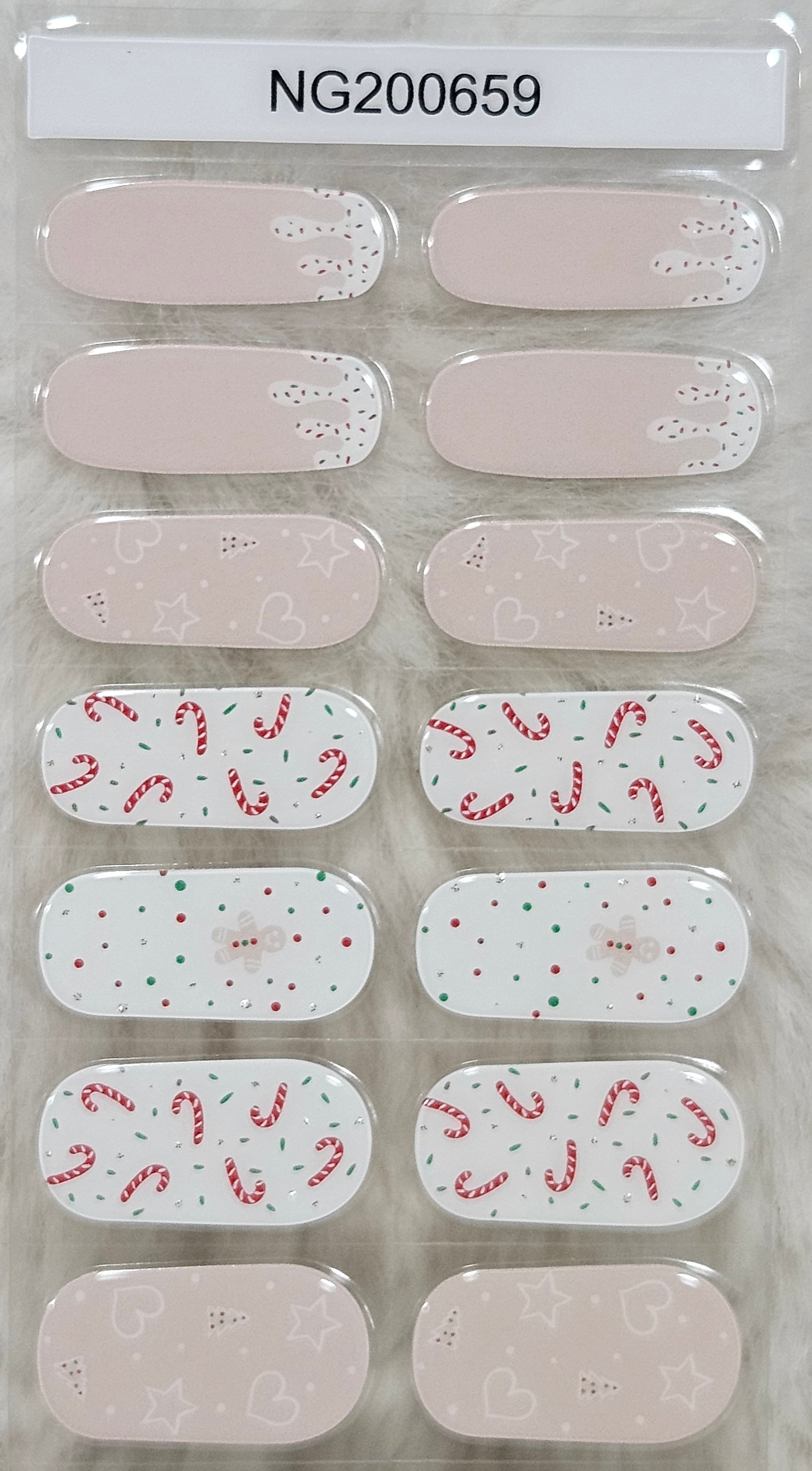 Glossy, Glitter, Pink, Red, Green, White, Christmas, Gingerbread Man, Candy Cane, Trees, Frosting, Sprinkles, Polka Dots, Holiday