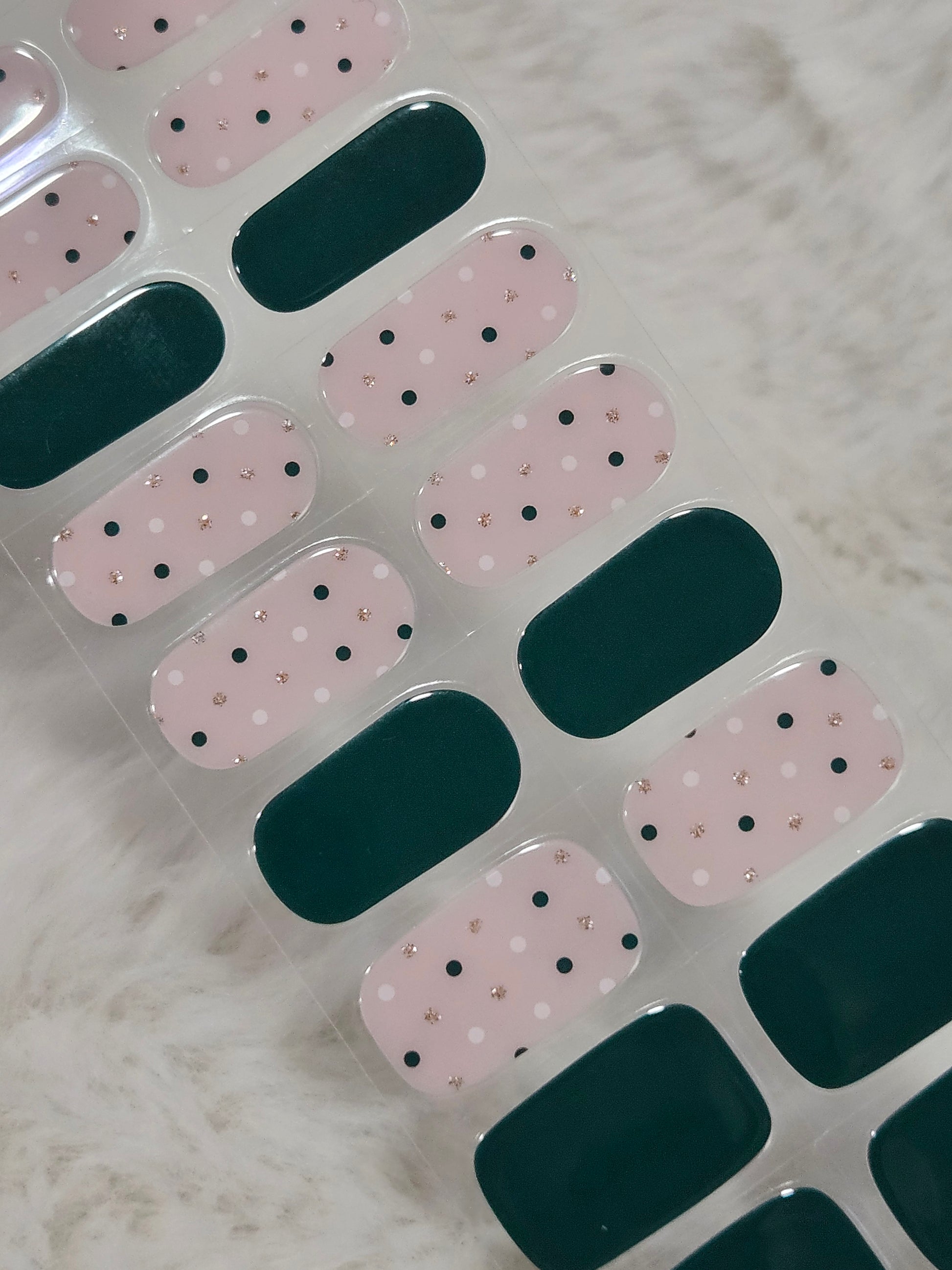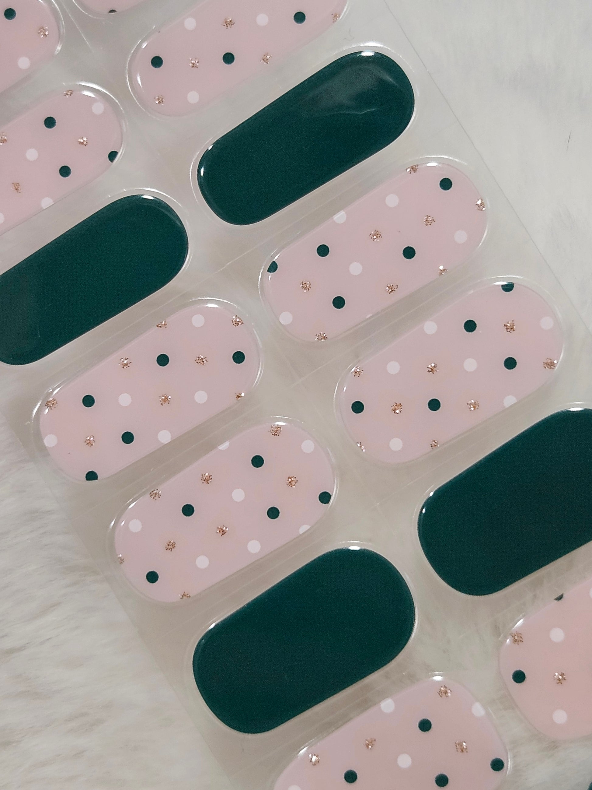 Glossy, Milky, Foil, Polka Dots, Green, Gold, White, Holiday, Christmas
