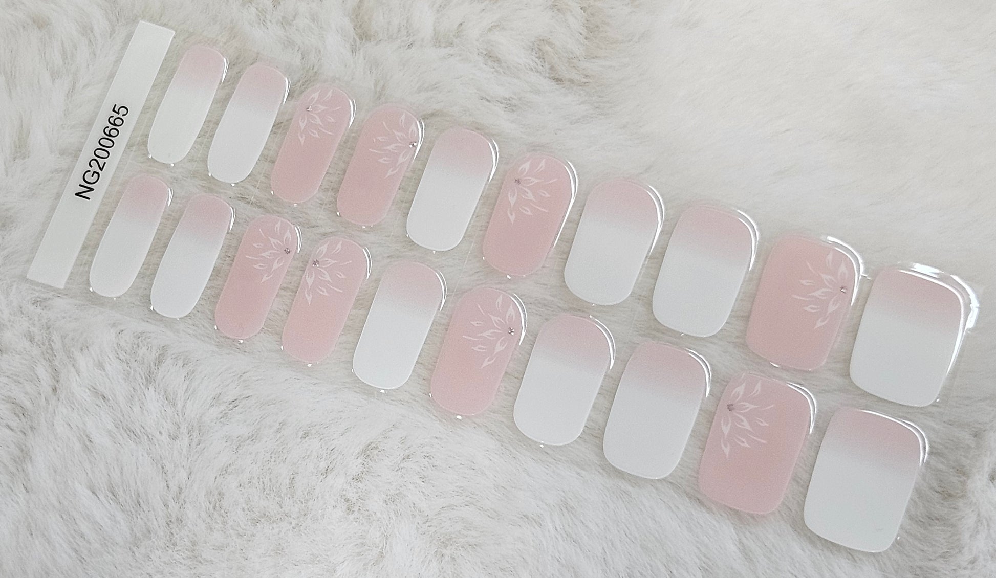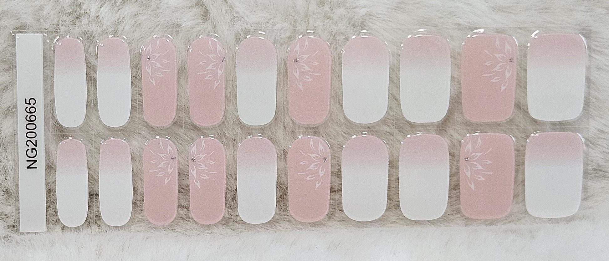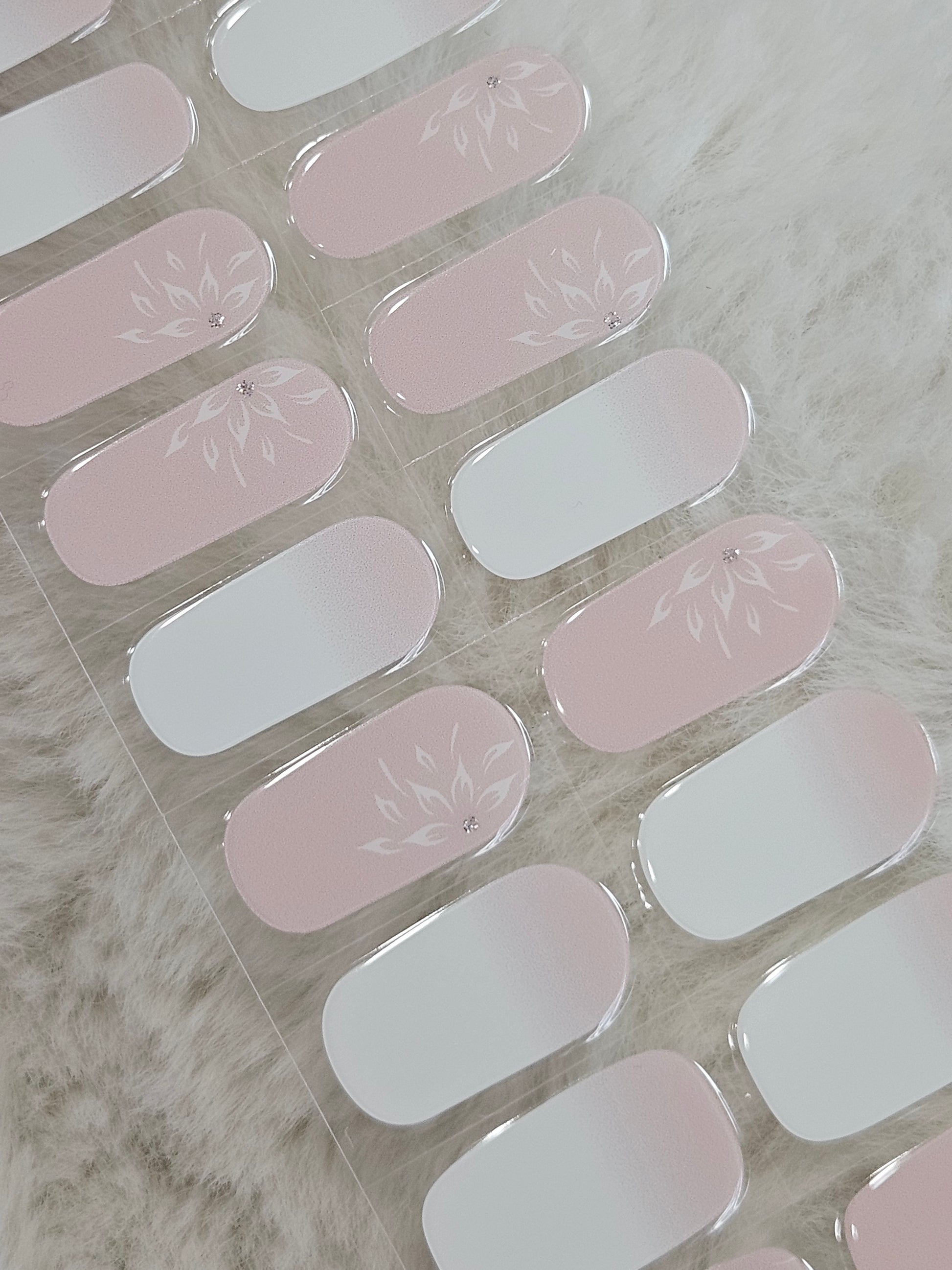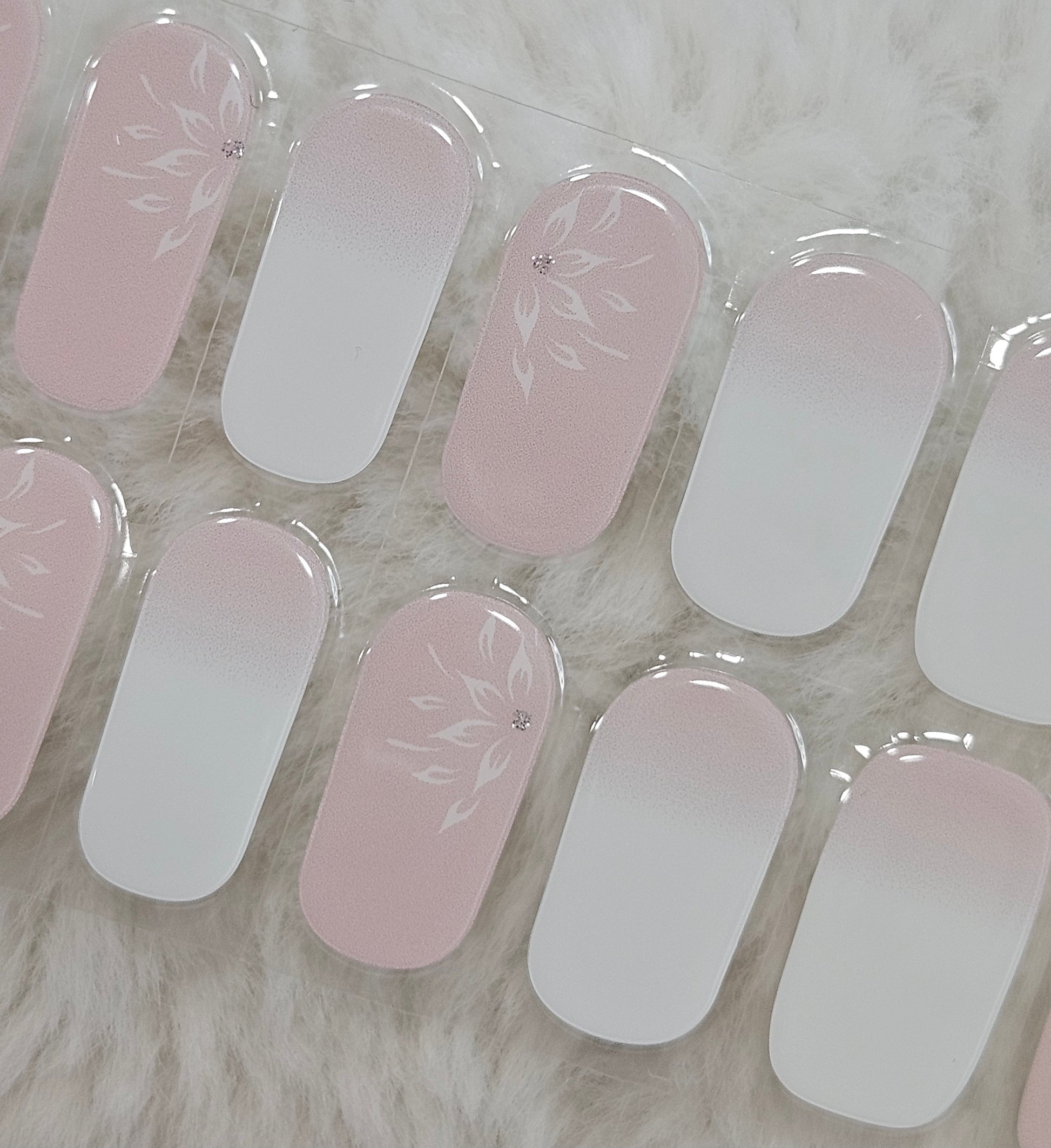 Glossy, Glitter Accent, Ombre, White, Pink, Flowers