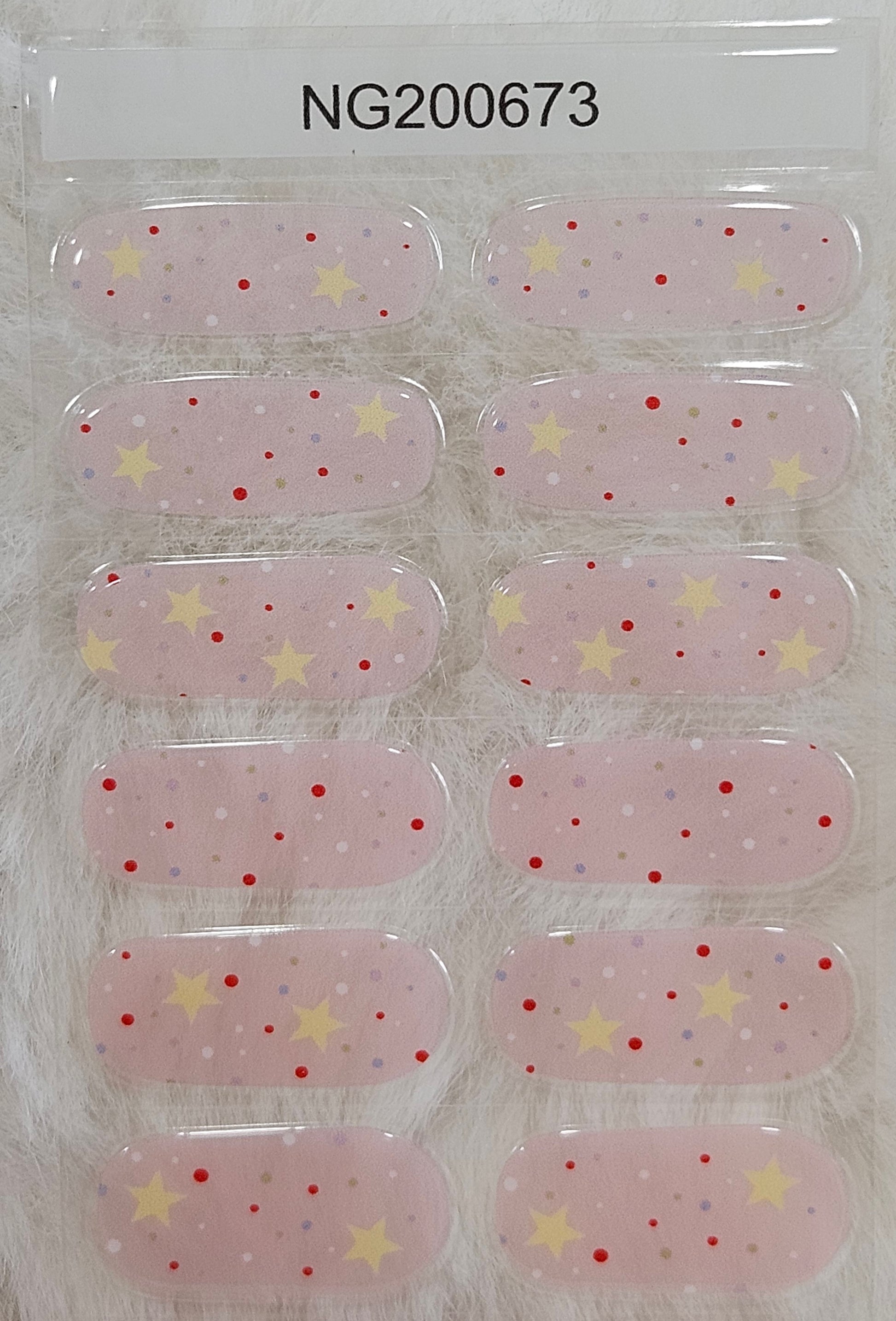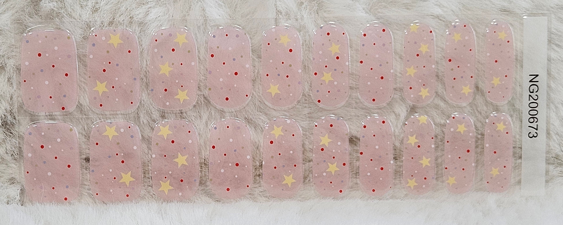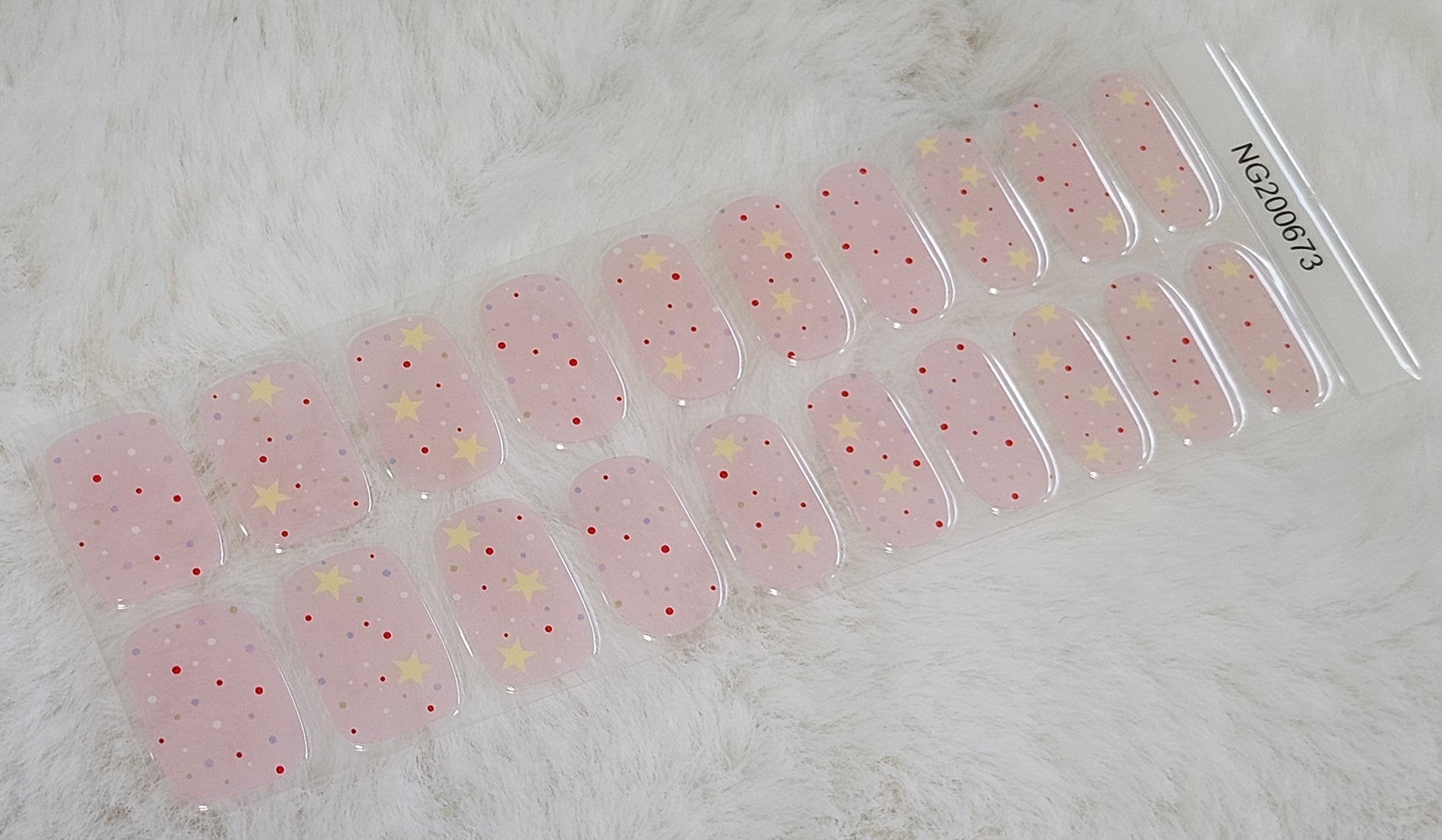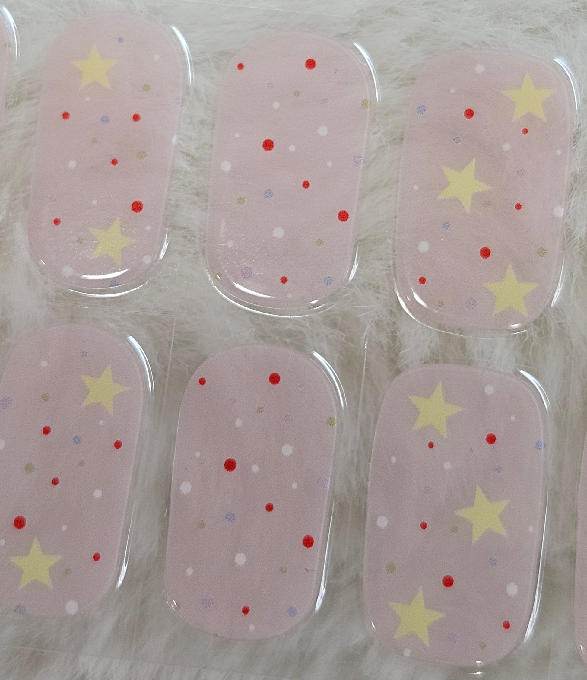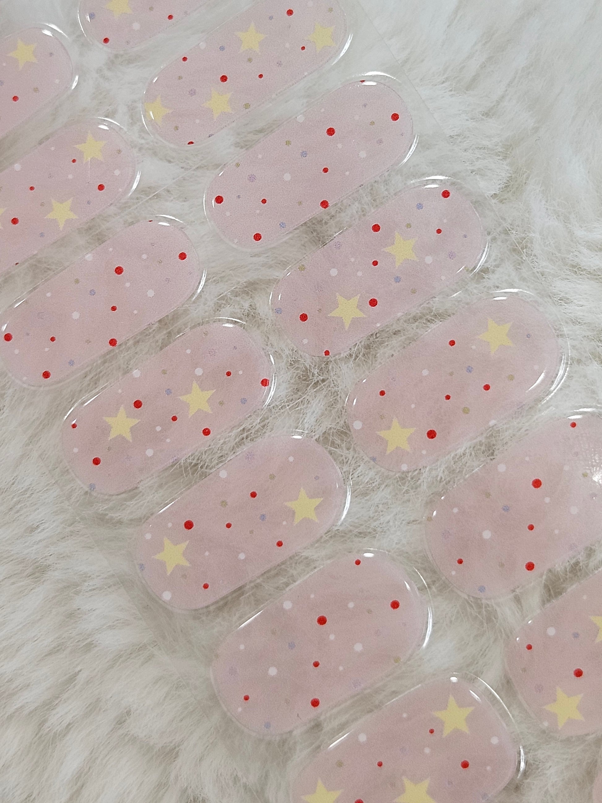 Glossy, Milky Pink Tone, Stars, Polka Dots, Yellow, Red, White