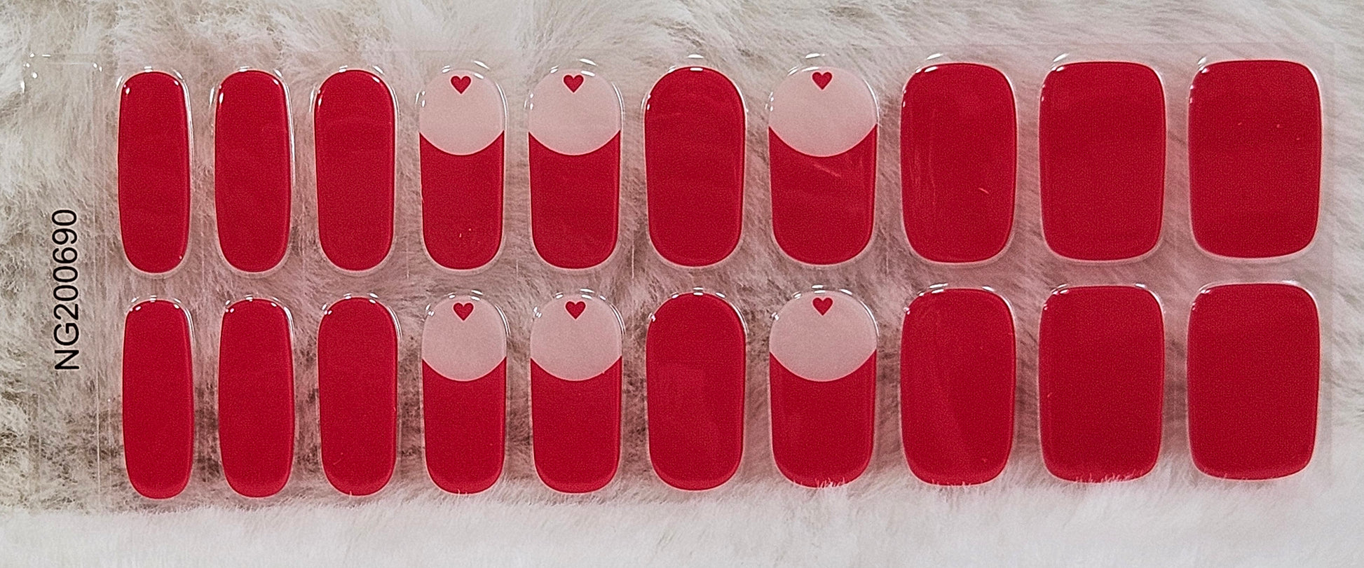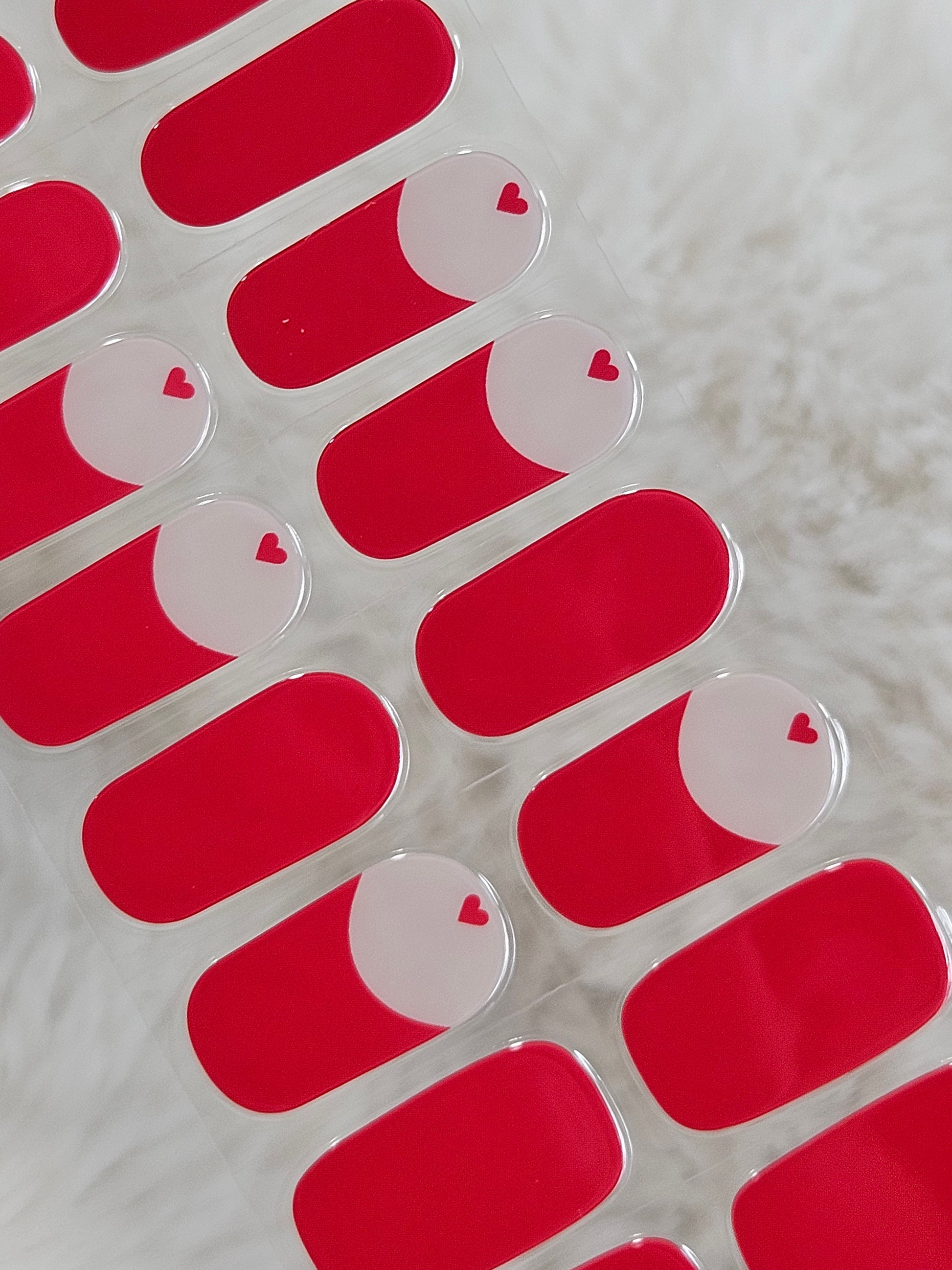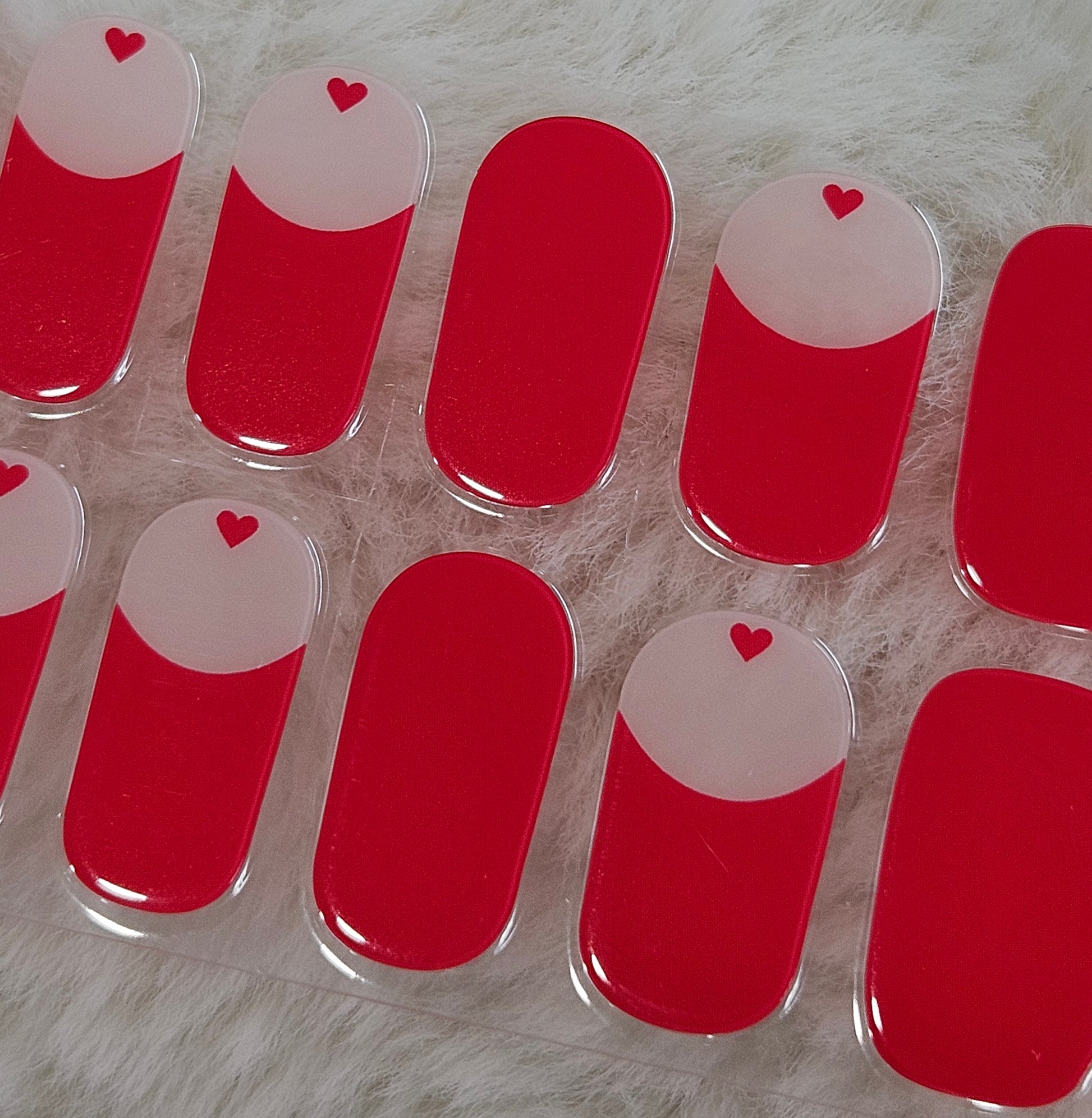Glossy, Milky, French Manicure, Hearts, Red, Valentine