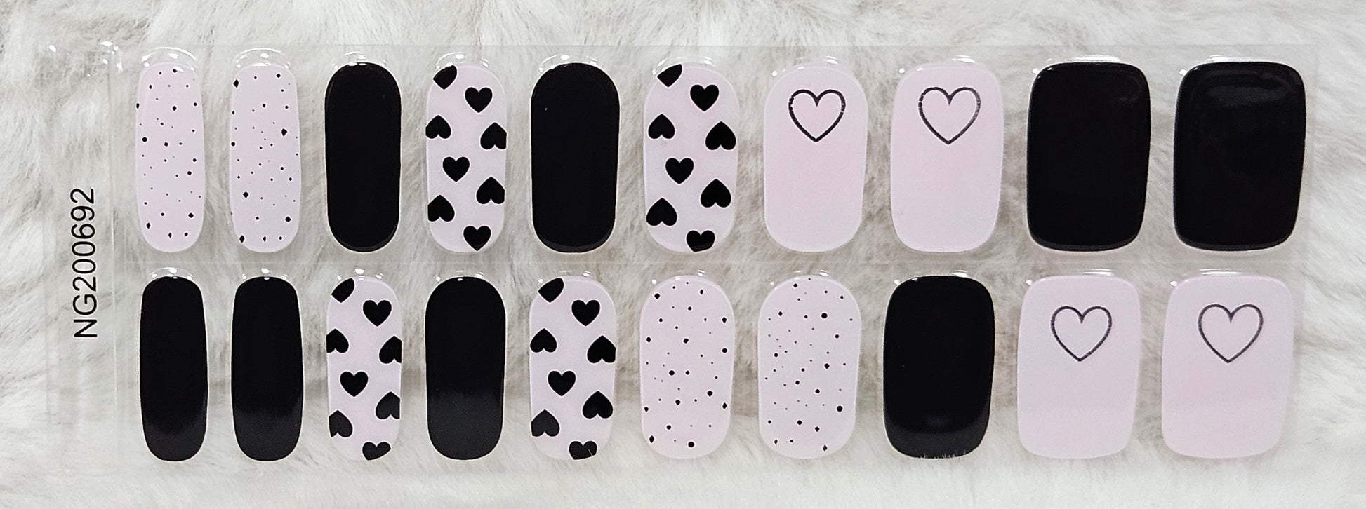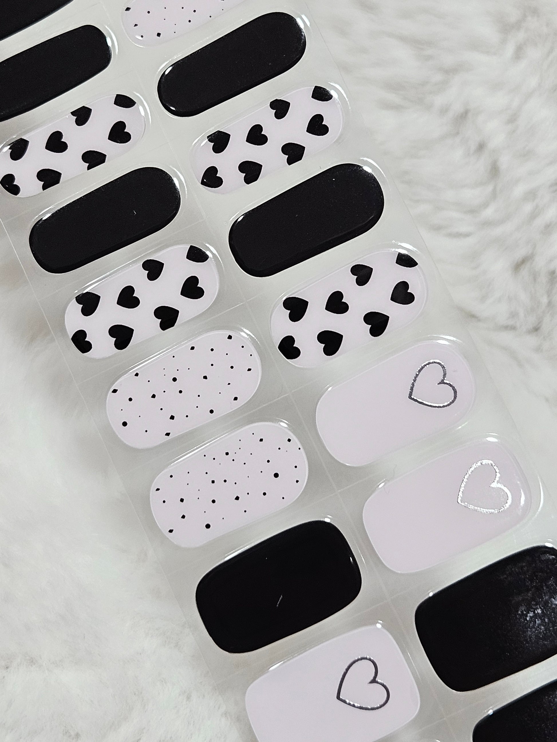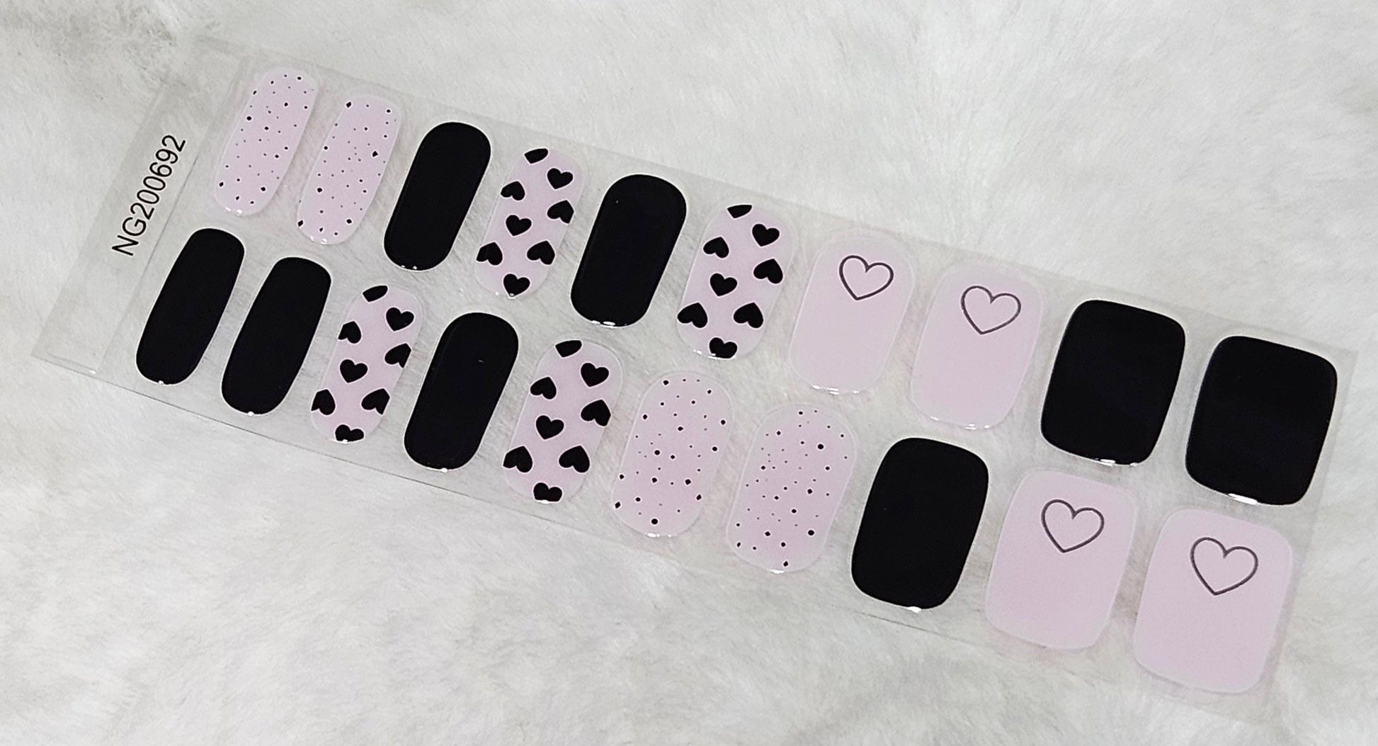 Glossy, Foil, Black, Light Pink, Hearts, Speckles