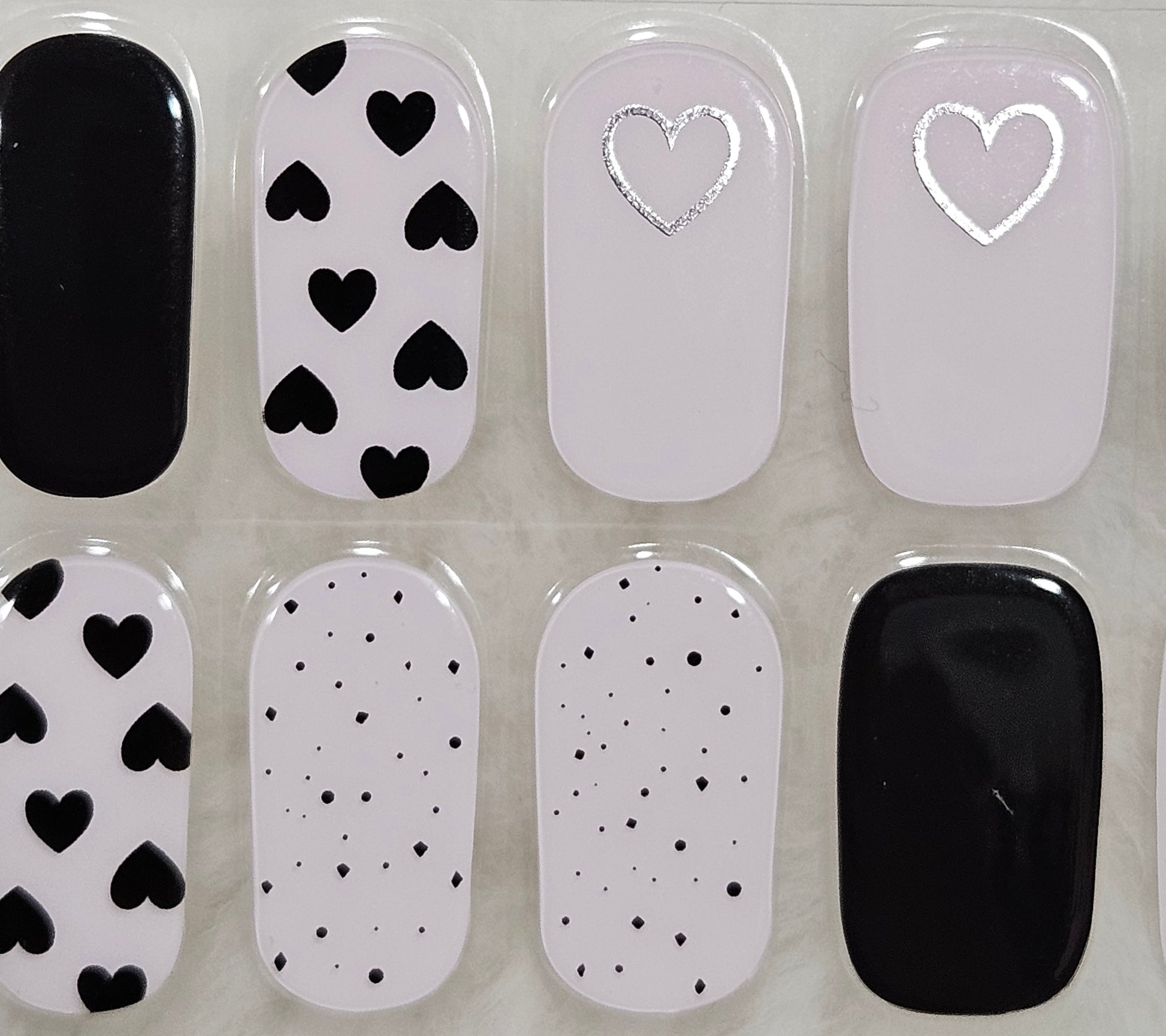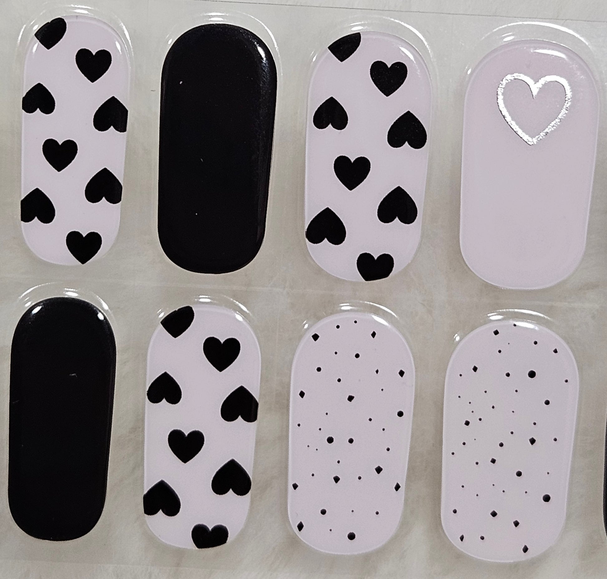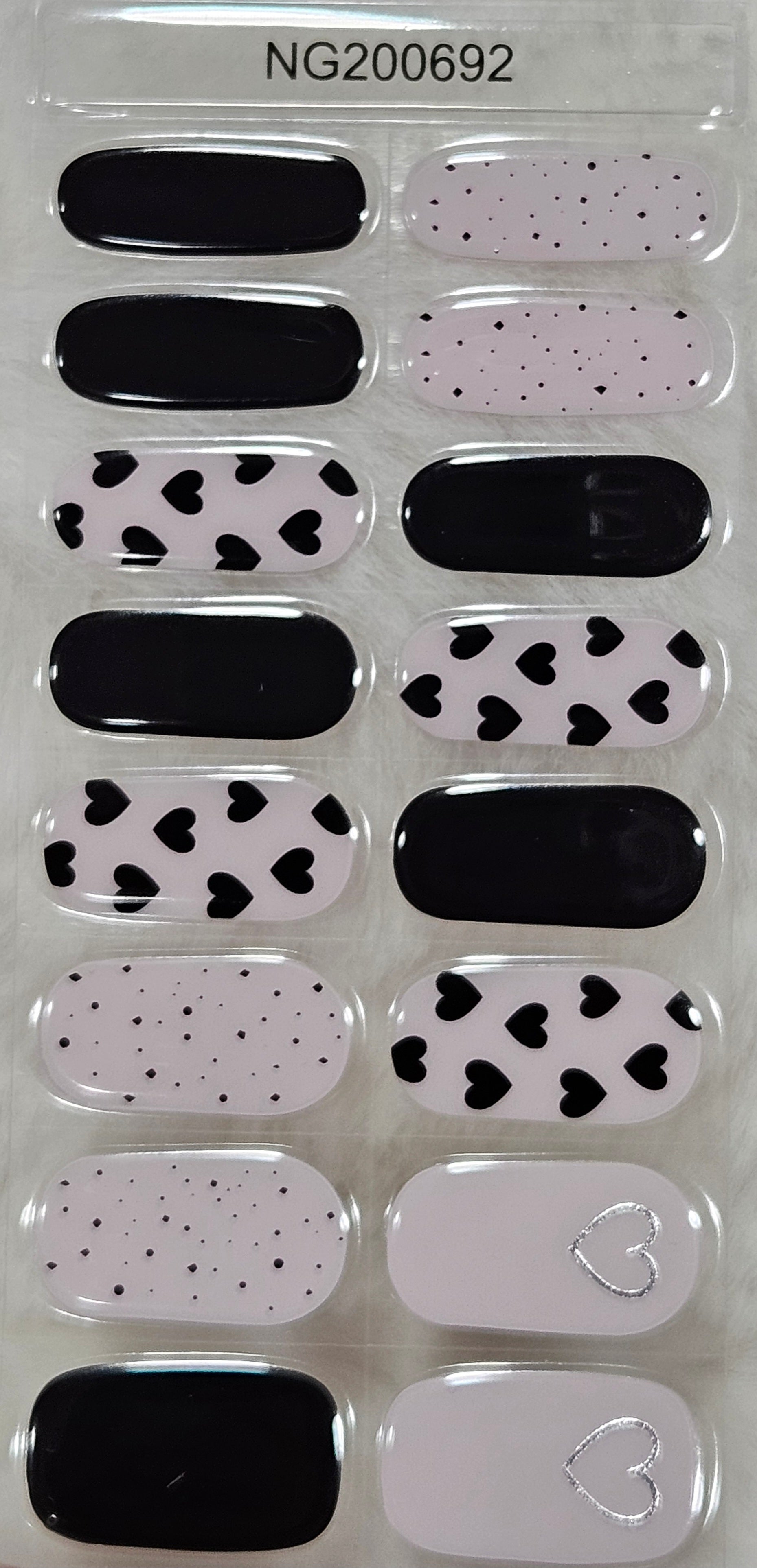 Glossy, Foil, Black, Light Pink, Hearts, Speckles