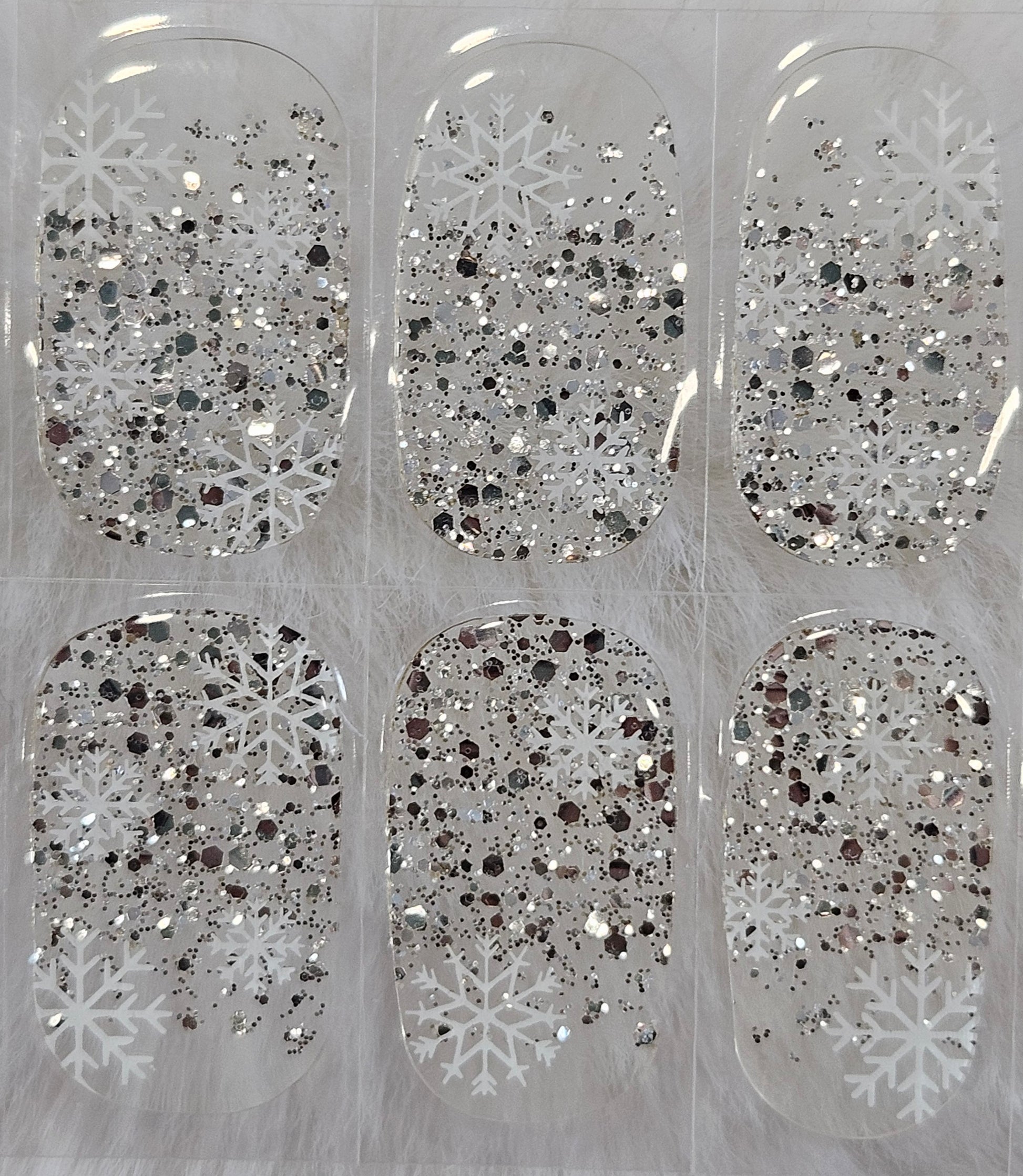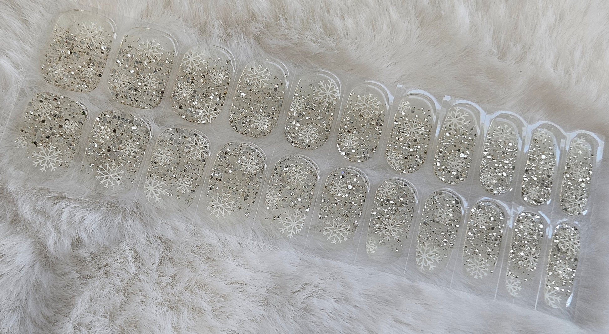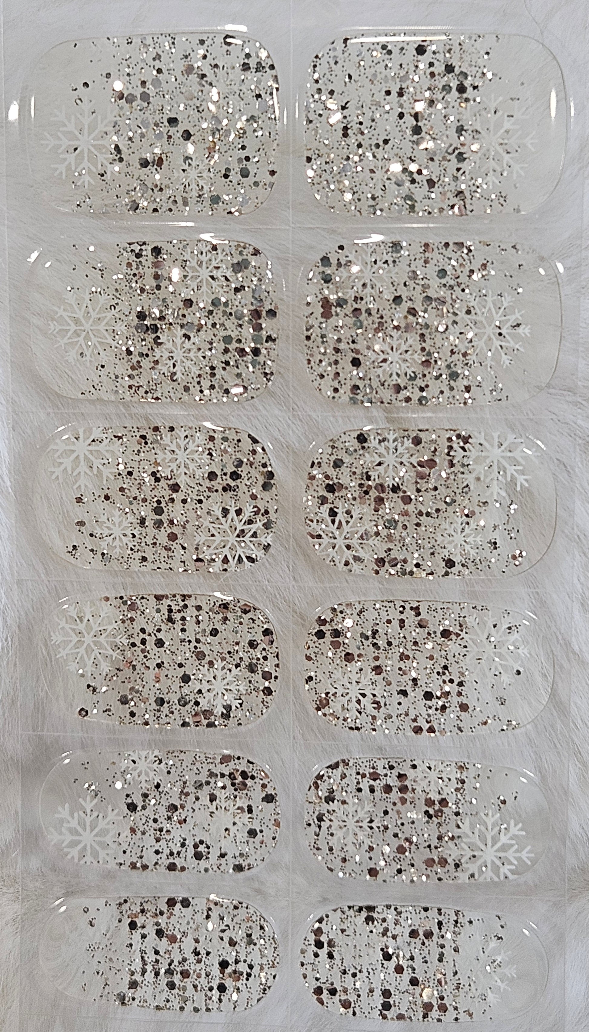 Glitter, Transparent, French Manicure, Champagne Gold, Snowflakes, Winter, Christmas
