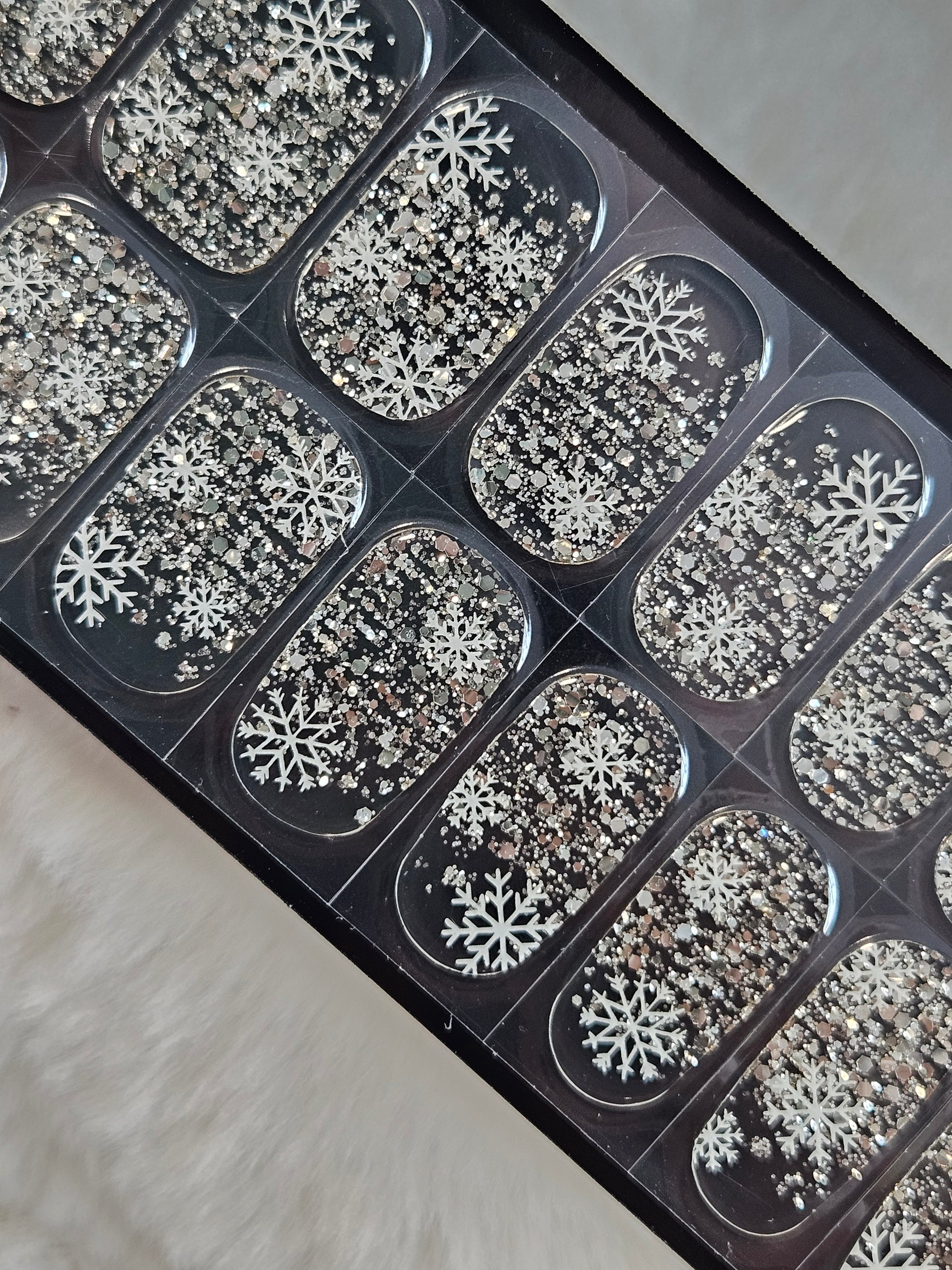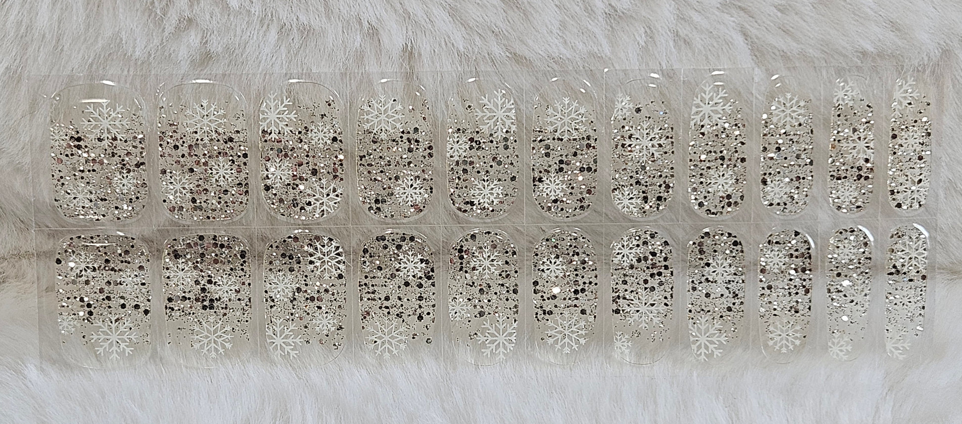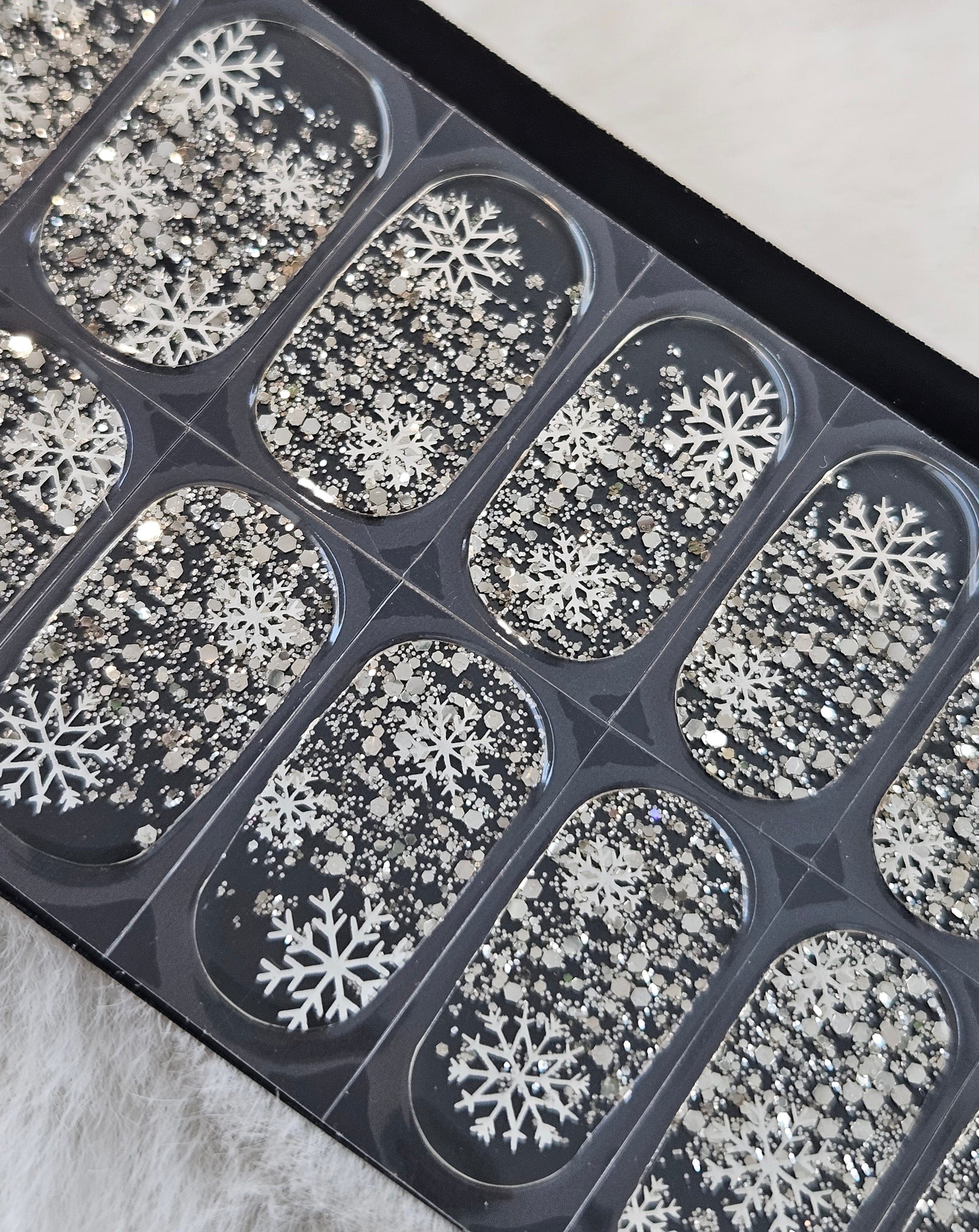Glitter, Transparent, French Manicure, Champagne Gold, Snowflakes, Winter, Christmas