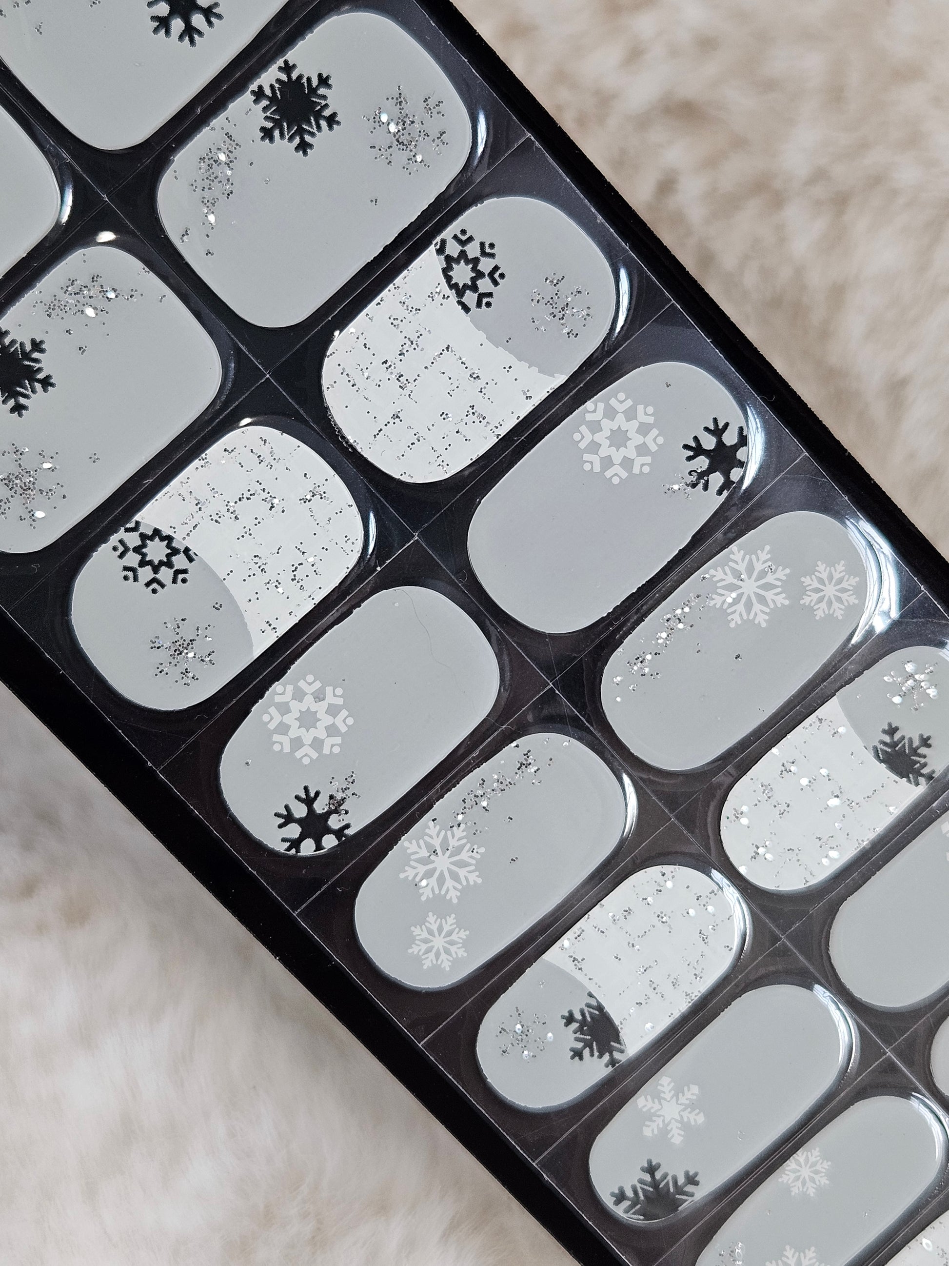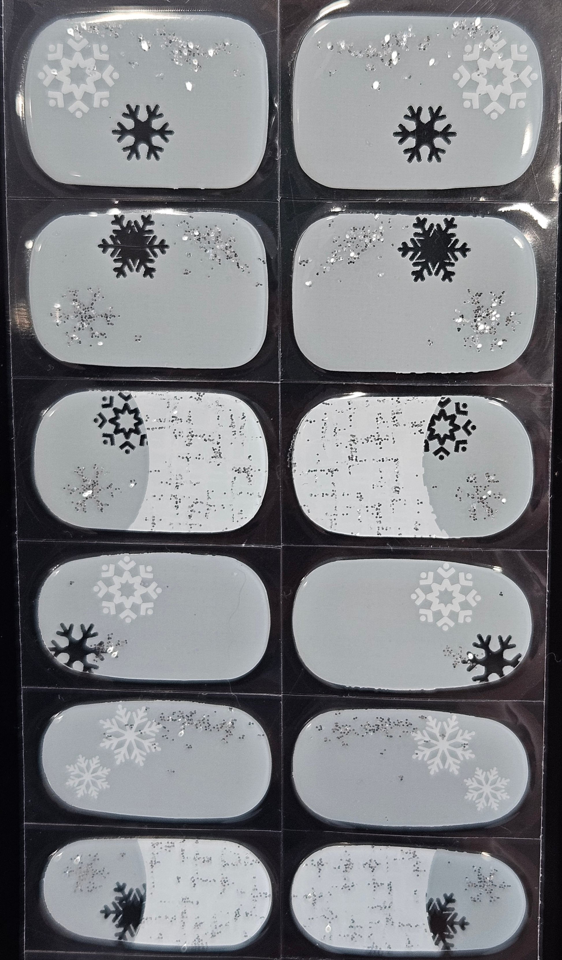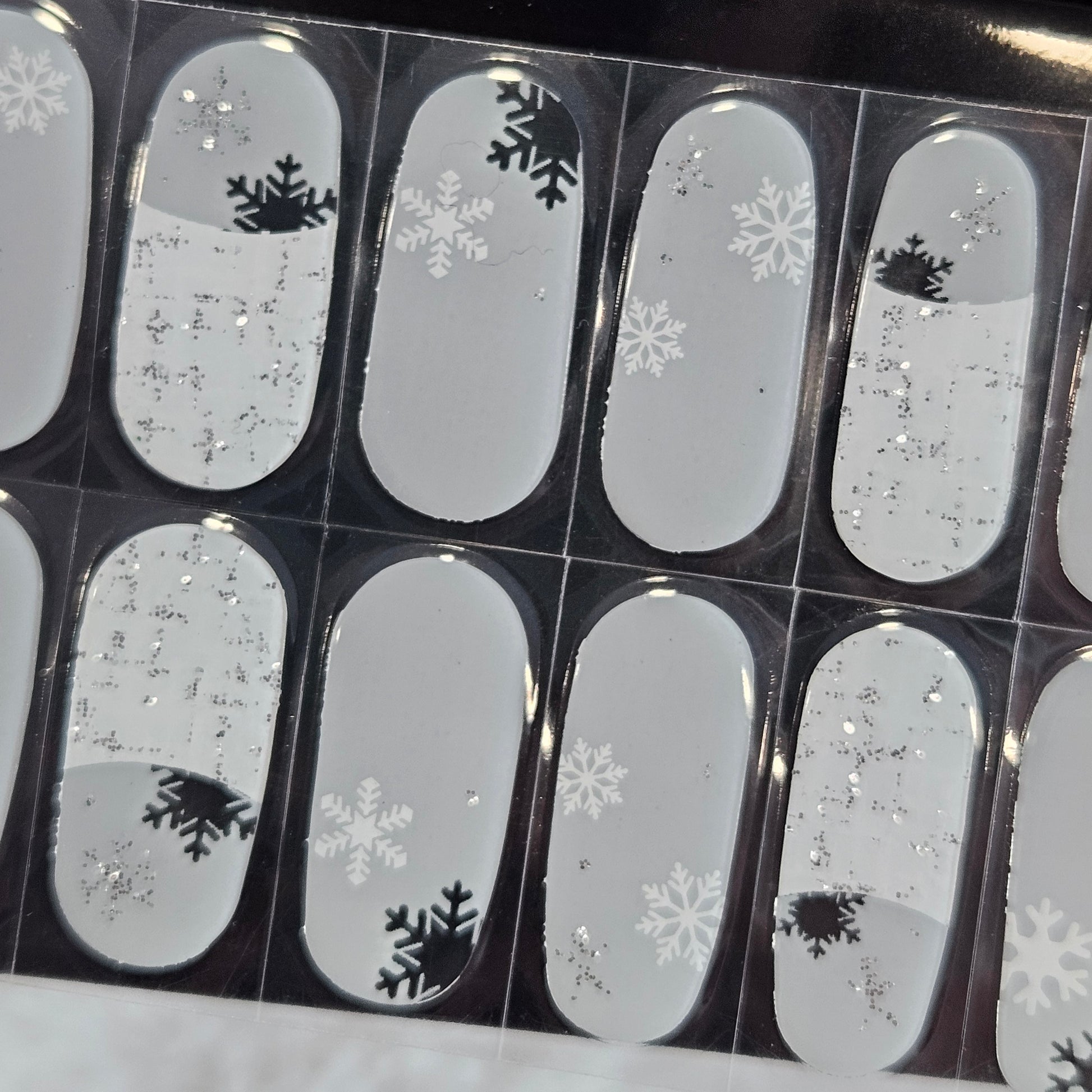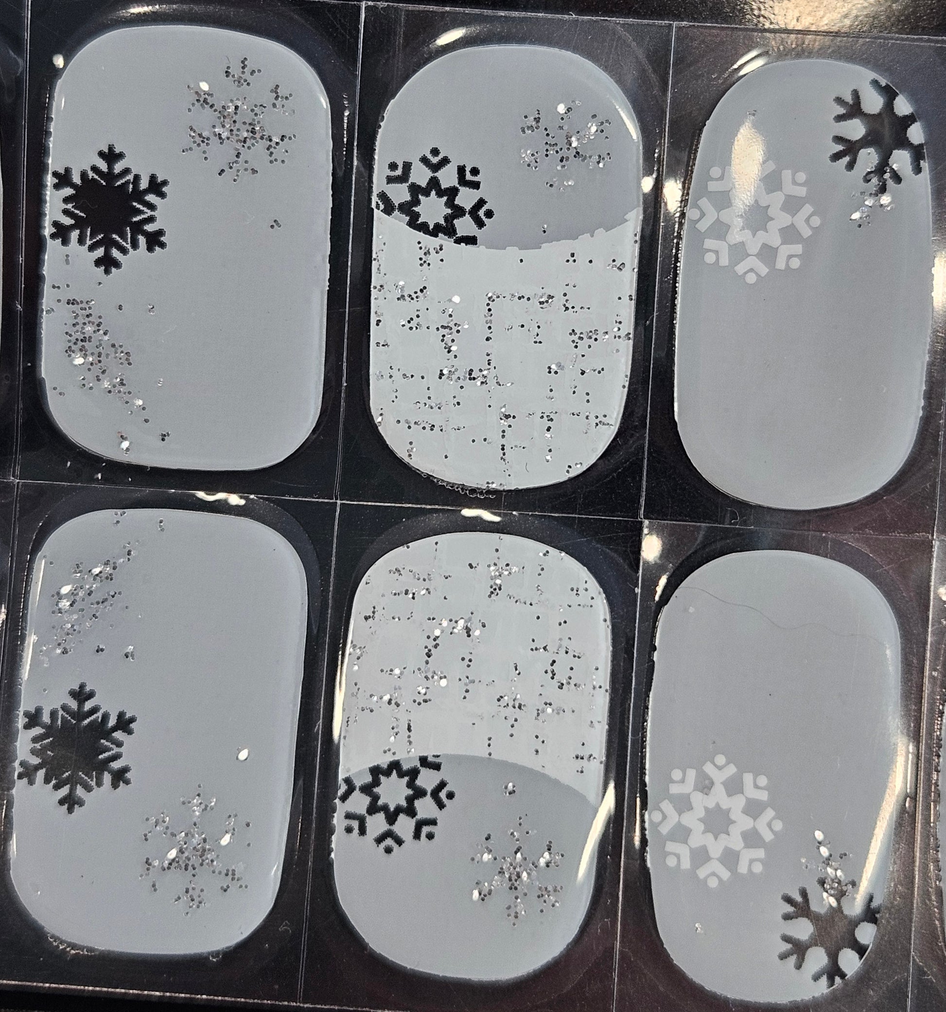 Glossy, Glitter, Semi Milky, Transparent, French Manicure, White, Silver, Snowflake, Winter, Christmas