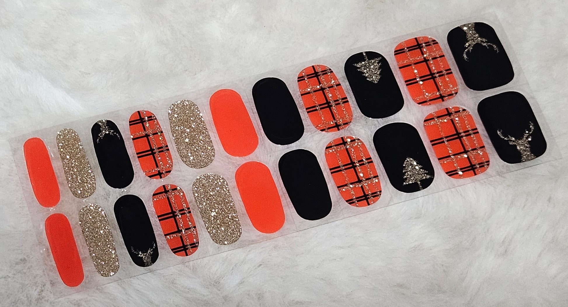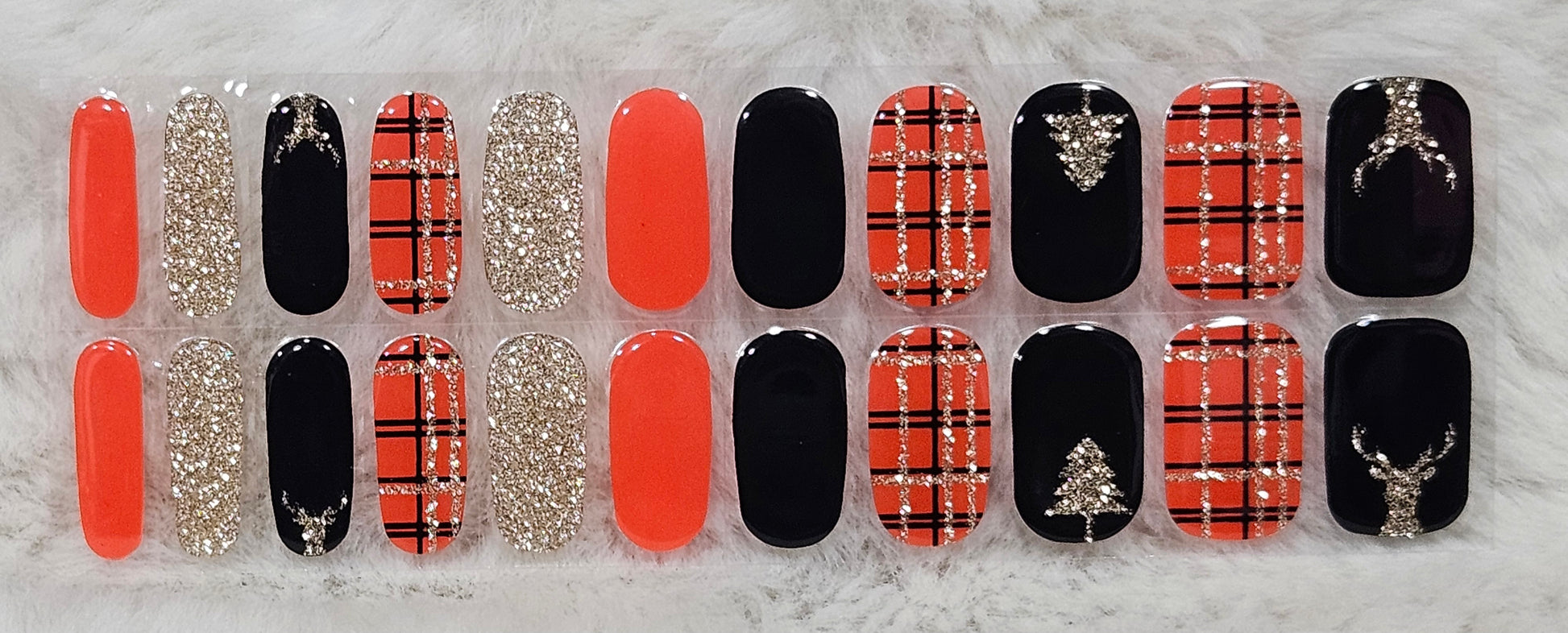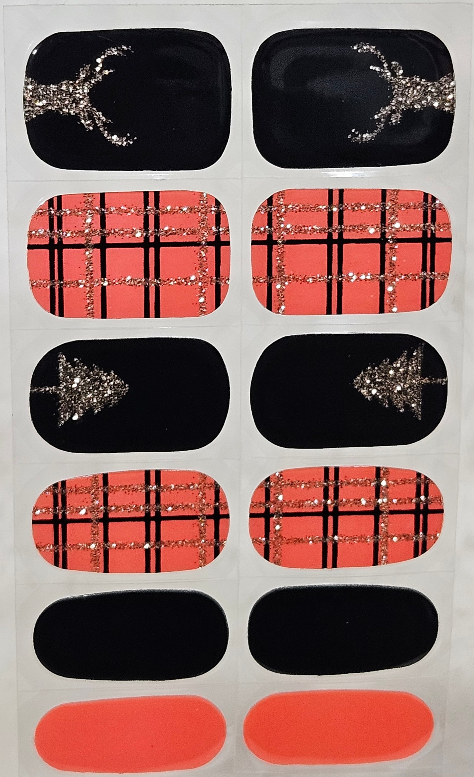 Glossy, Glitter, Plaid, Red, Black, Gold, Deer, Trees, Holiday, Christmas