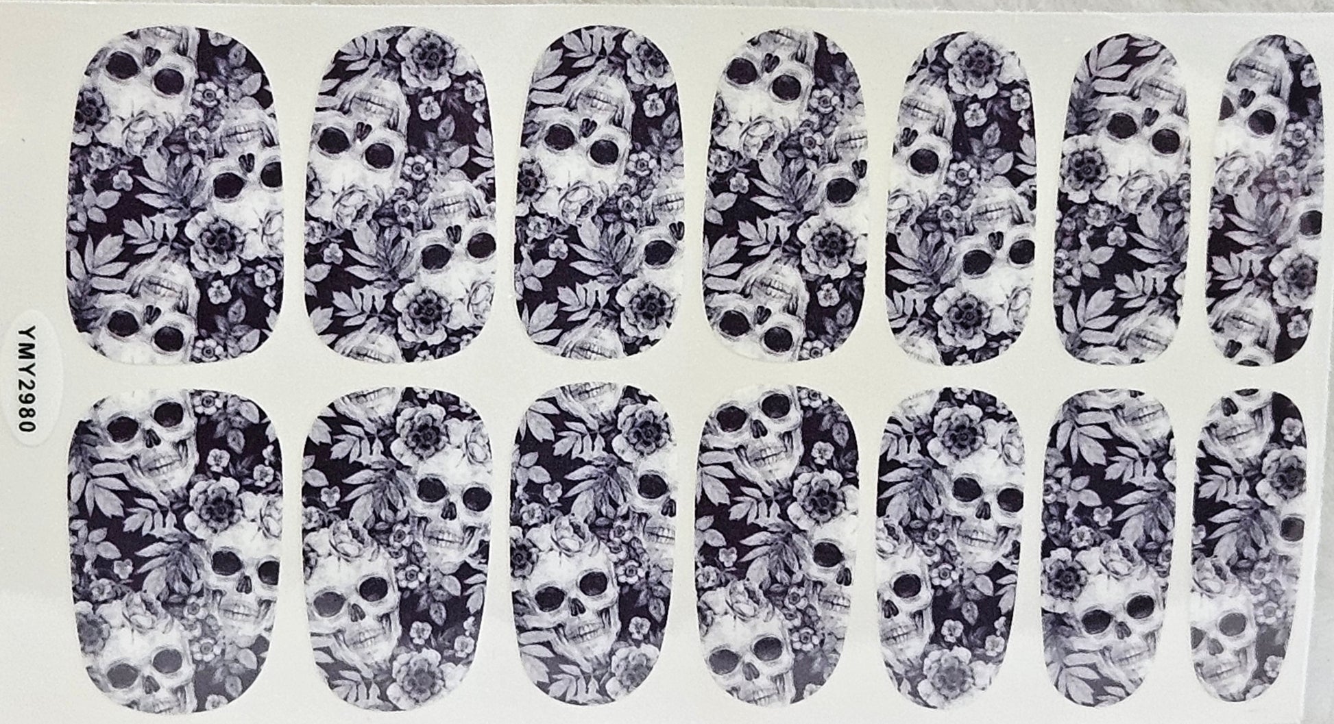 Glossy, Black, White, Skulls, Leaves, Flowers