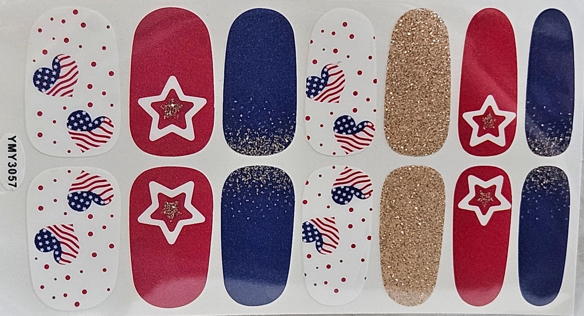 Glossy, Glitter, Red, White, Blue, Gold, Flag, Hearts, Stars, Patriotic